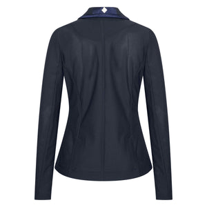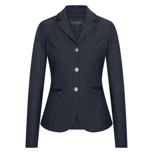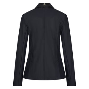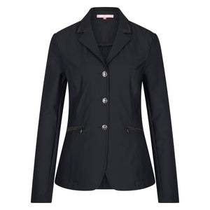 Competition blazer with covered zipper CF and 3 visible buttons * 2 Double weltpockets with covered zipper * Front and back mesh fabric * Sleeve, collar and lapel mesh fabric * 2 Slit in backpart*Unlined * Edge collar satin fabric * Button with crystal Rhinestones * Ultra light fabric * Breathable fabric * Maximum comfort * 4 Way stratch fabric