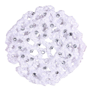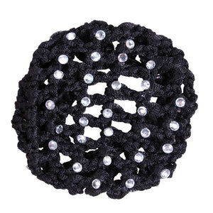 Large mesh hair net with many silver rhinestones. Available in many colours.