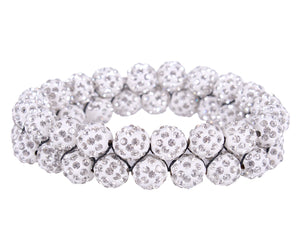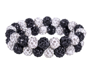 Elastic hair scrunchie with beads strung to sturdy elastic. The scrunchie is finished with small rhinestones on the beads for an extra chic look.