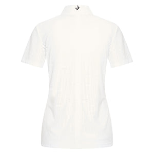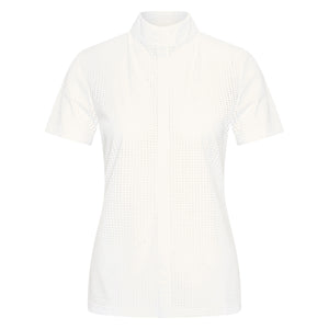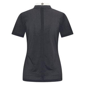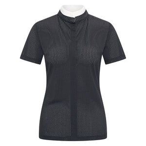 Experience ultimate comfort and style with our competition shirt crafted from high-quality perforated fabric. Designed with a sleek short sleeve cut and a blind button enclosure centrefront, this shirt offers a sophisticated look perfect for any competition. The white collarstand features two small snap buttons for added detail, while the metal IMPERIAL RIDING plate on the centreback adds a touch of elegance. Stay cool and collected in the arena with the unique fabric stripe detail on the back. Elevate your riding attire with our premium competition shirt.