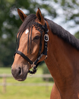 With a fly fringe, your horse can keep the flies off his head. This knotted fly fringe is easily attached to the head collar by means of two buckles.