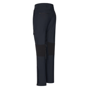 Functional pants * Waterrepellent with a membrane between the 2 layers * Dirt resistant * High waistband with extra high back to keep you warm * 2 buttons enclosure * Pockets at back and front part and at upperleg * Extra strong knee part * Zipper at hem * Straight leg shape * At side zipper with extra pocket