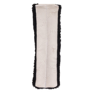 Protector which can be used in multiple ways. You can putit on top under the noseband to protect the nose of the horse. Or you can use it between the jaw and the bottom noseband to protect the jaw of the horse. The protector has a very soft sherpa side for extra comfort for the horse.