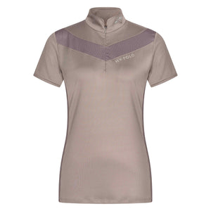 Small blind half zipper * Mesh fabric insert at chest and side panels * Printed logo artwork from rhinestones on chest * Printed horses logo artwork on collar