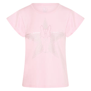 This chic top with an artwork full of rich Rhine stones will make you shine like a star. The Belle star top with horsehead in Rhine stones has special clock shape sleeves that will look even more beautiful while riding your horse.