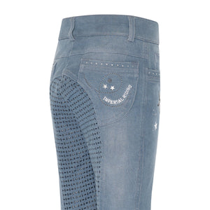 Upgrade your riding wardrobe with our latest innovation: the five-pocket denim riding breeches! Featuring a zipper fly and hook and eye closure for a secure fit, these breeches also include elasticated inserts at the bottom leg for maximum comfort. But the true standout feature is the silicon fullseat, providing extra grip and stability in the saddle. With beautiful embroidery and rhinestone embellished artworks, as well as rhinestone pocket entrances, these breeches are both stylish and functional. Step up your equestrian game with our denim riding breeches today!