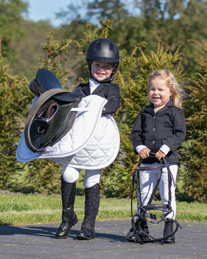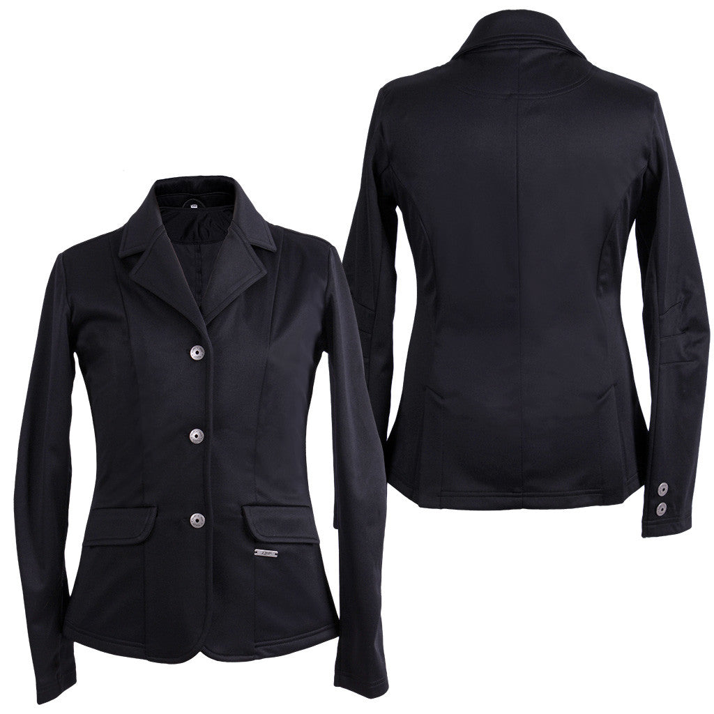 Basic competition jacket Robin Junior is made of a light stretching fabric. The jacket features a button closure with "Quality Horse Products" buttons. The same buttons are placed on both sleeves....