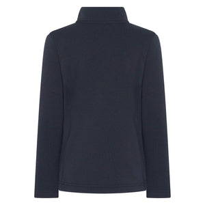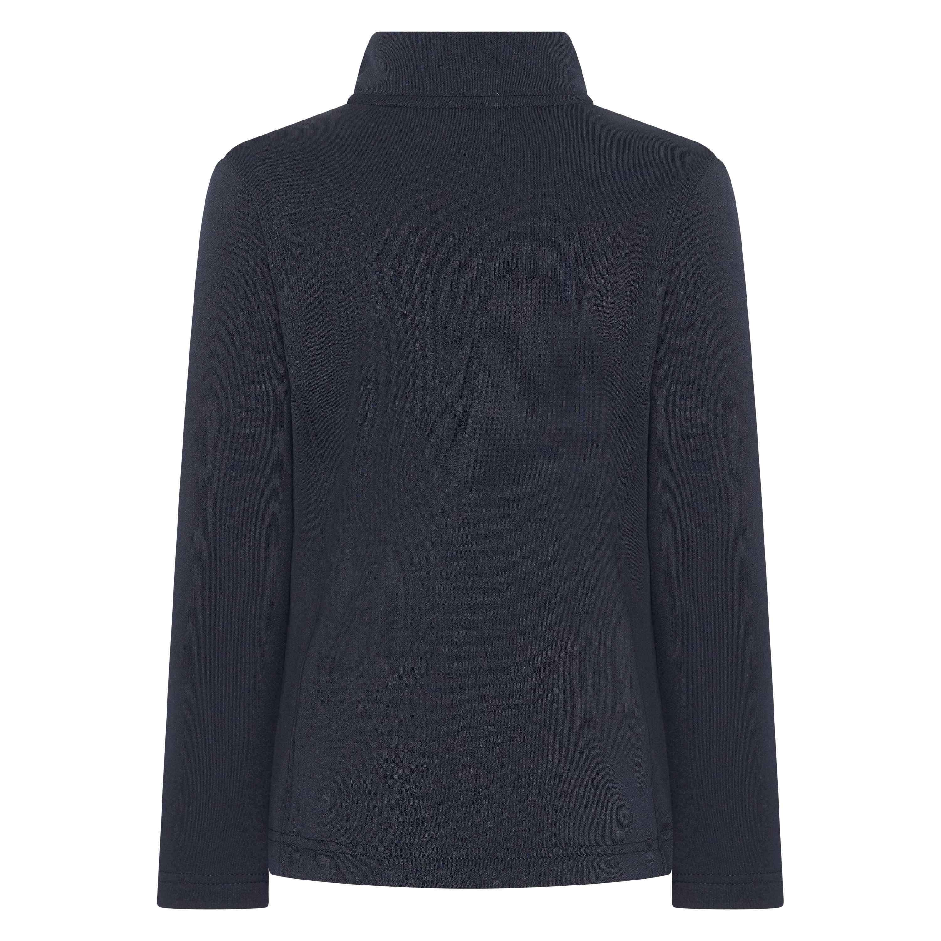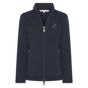 Cardigan with zipper centrefront * In frontpart in lengthseams are pockets with zipper * On left chest a metal logo print * Collarstand