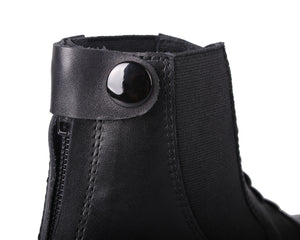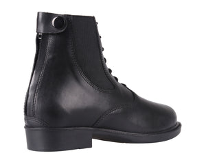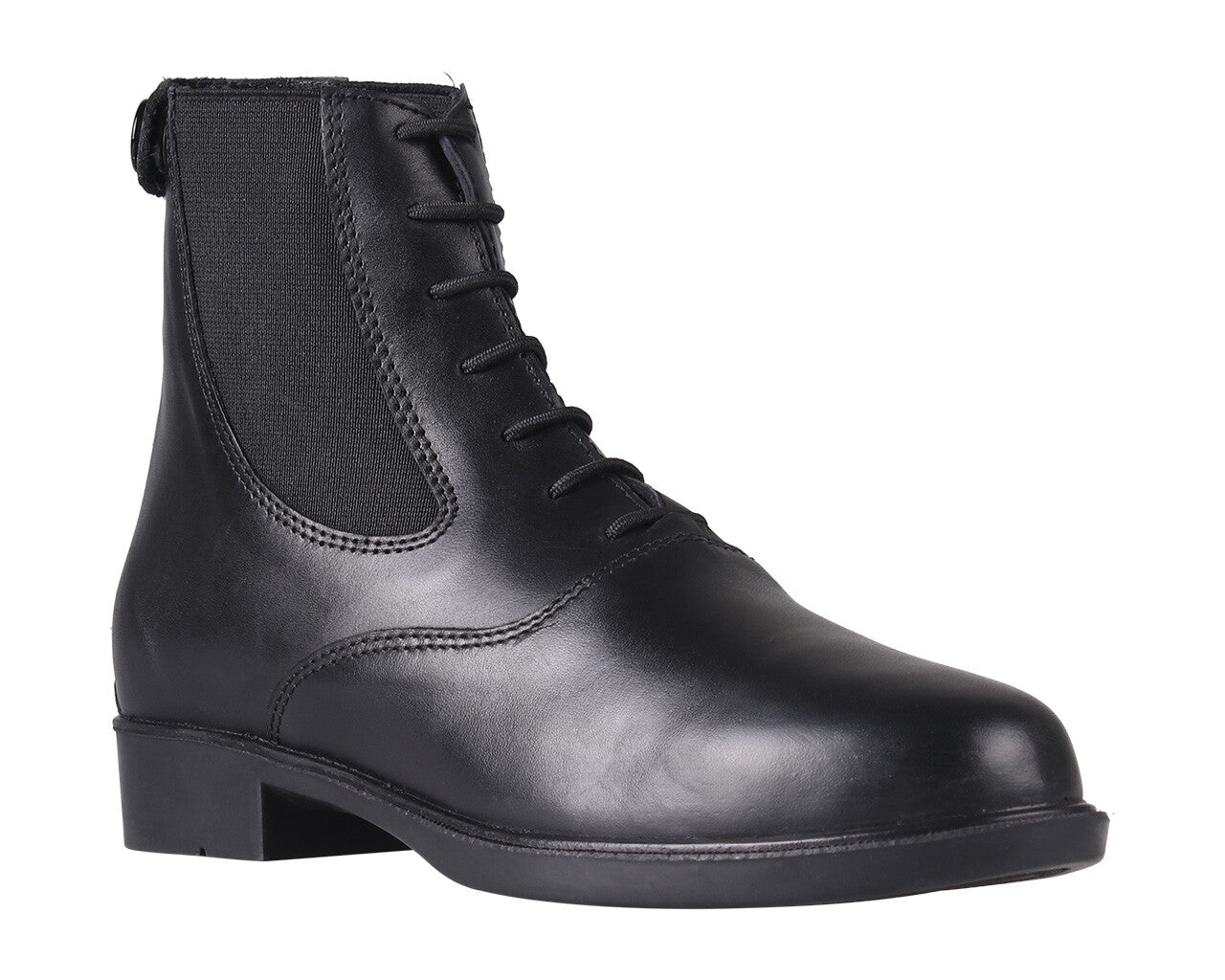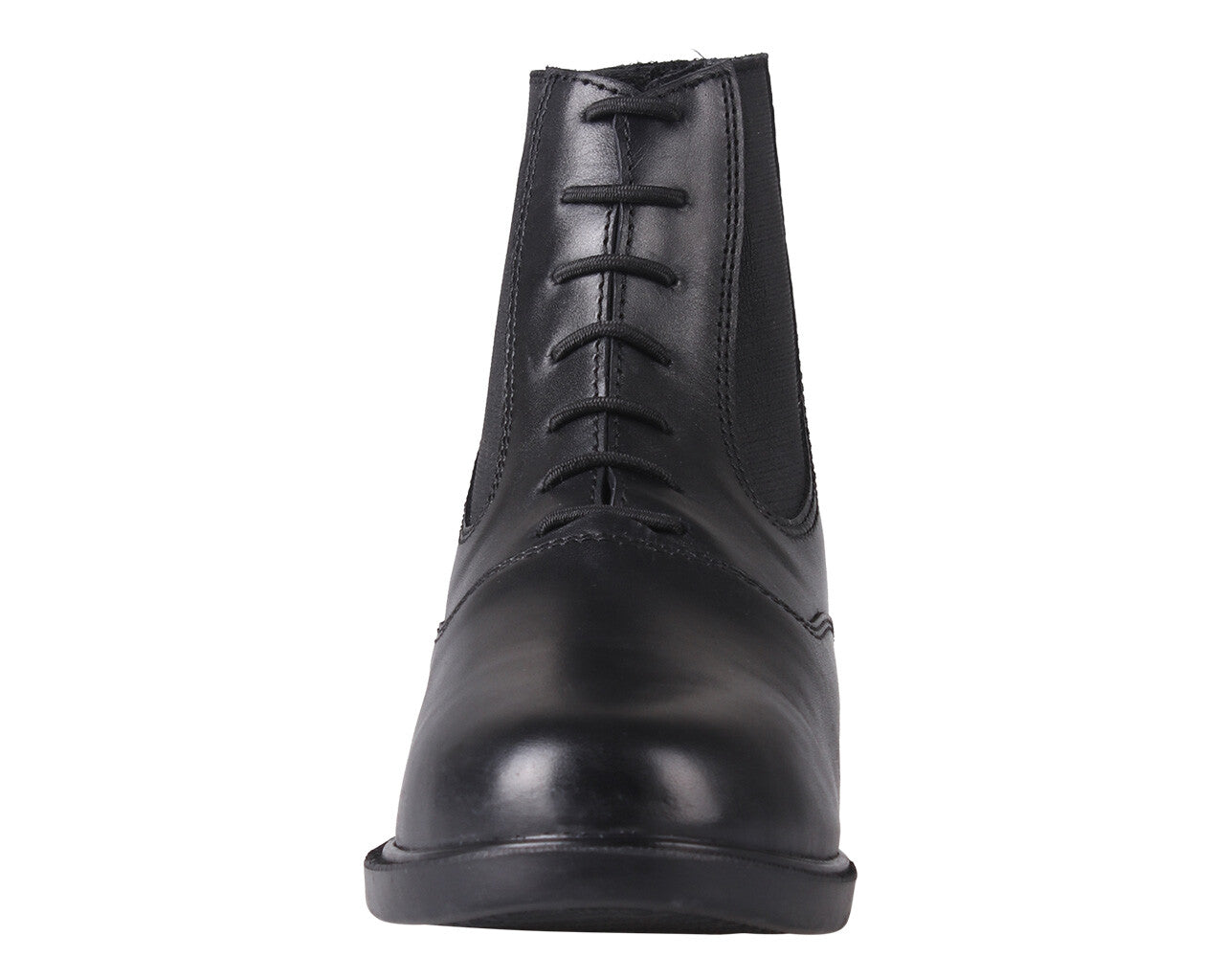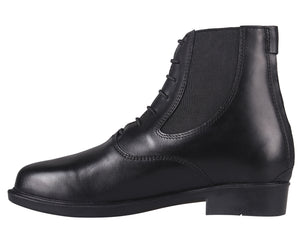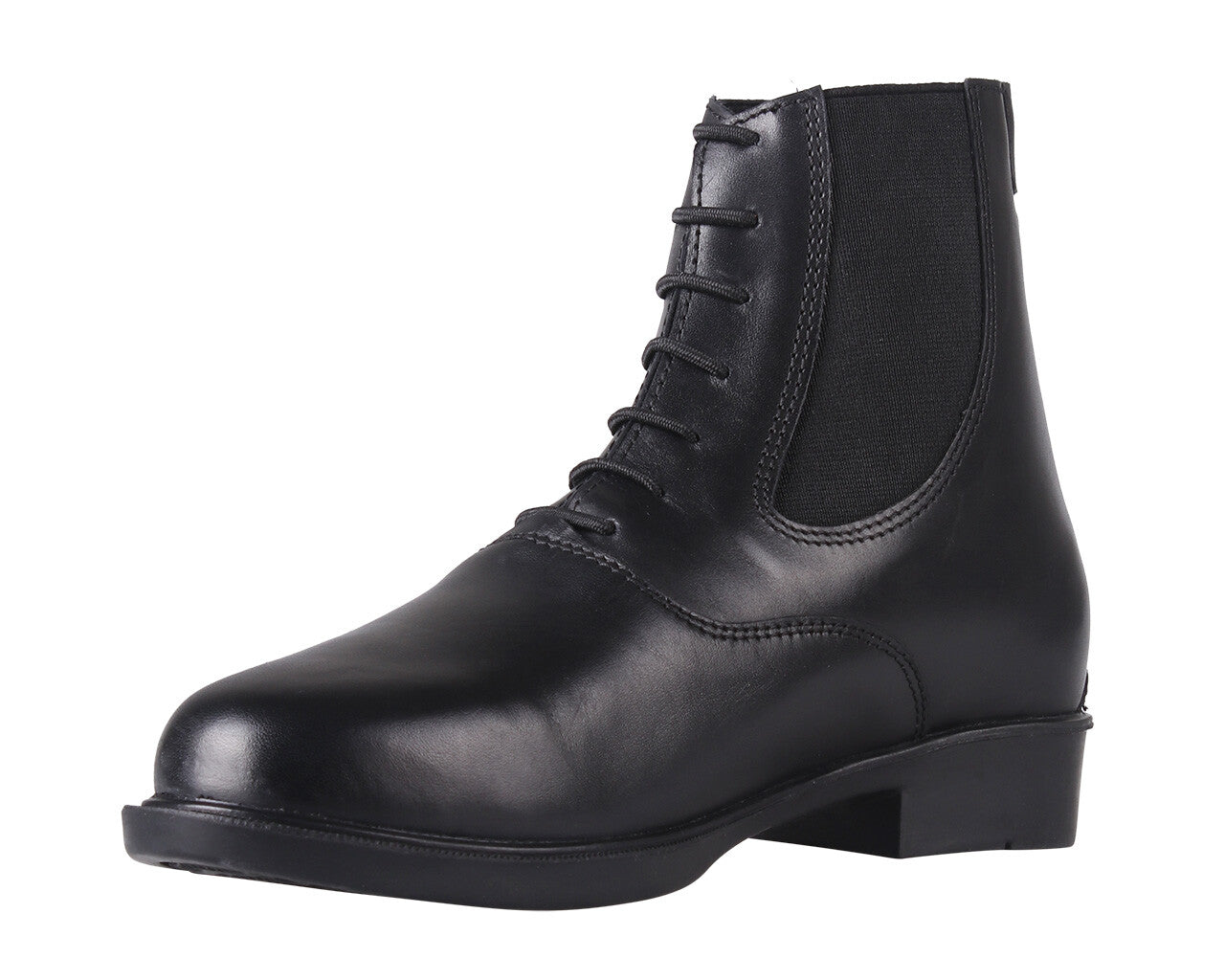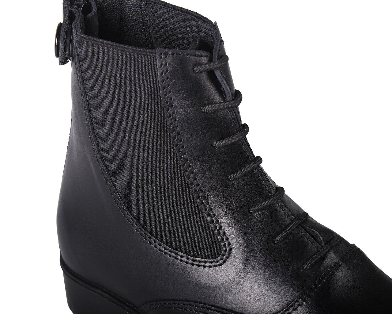 The Tulsa is a tough jodhpur made of leather. Easy to put on due to the elastic laces on the front. The large elastic insert provides a proper fit around the ankle.