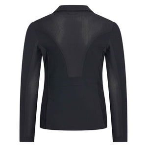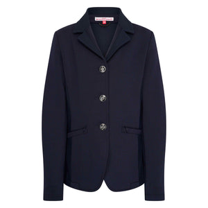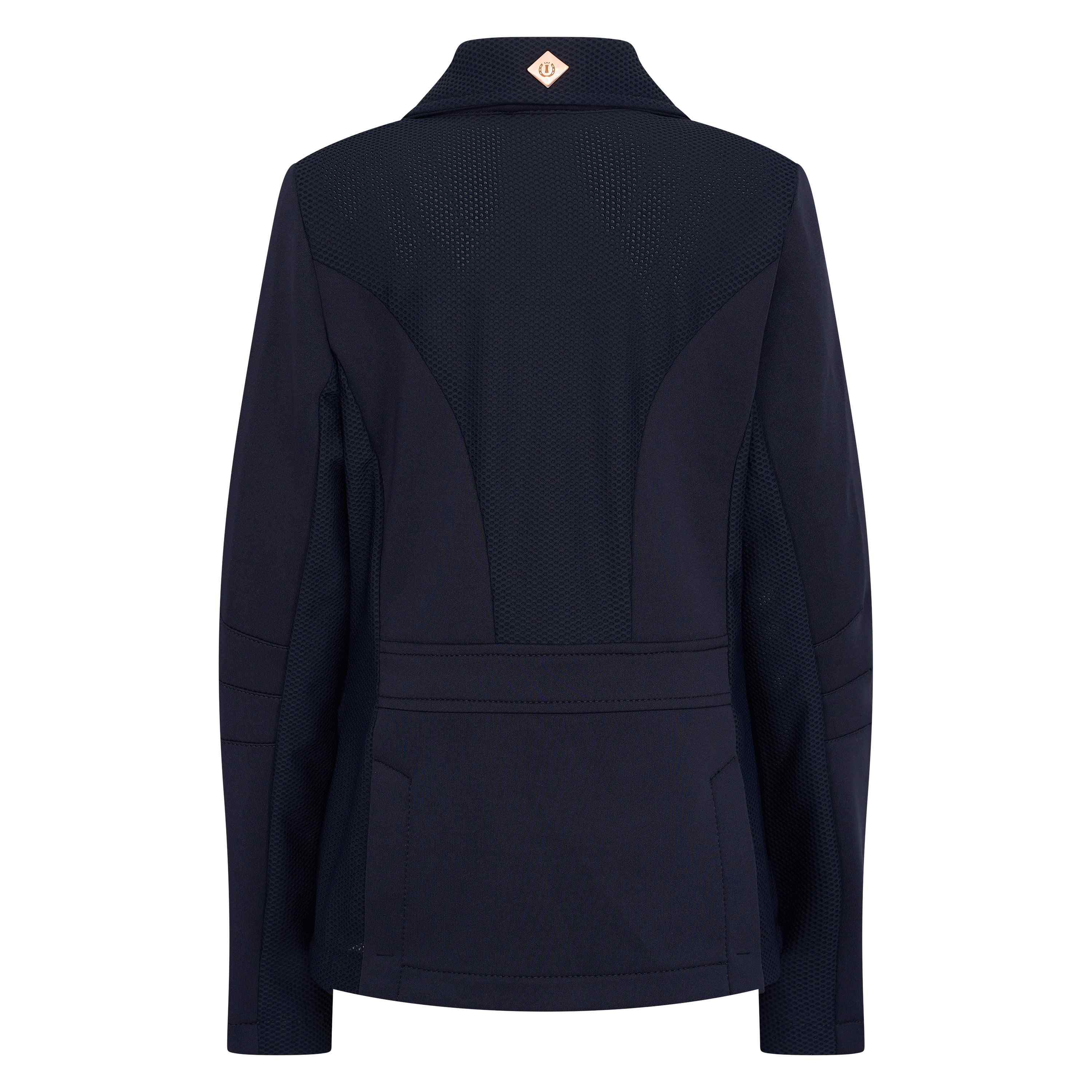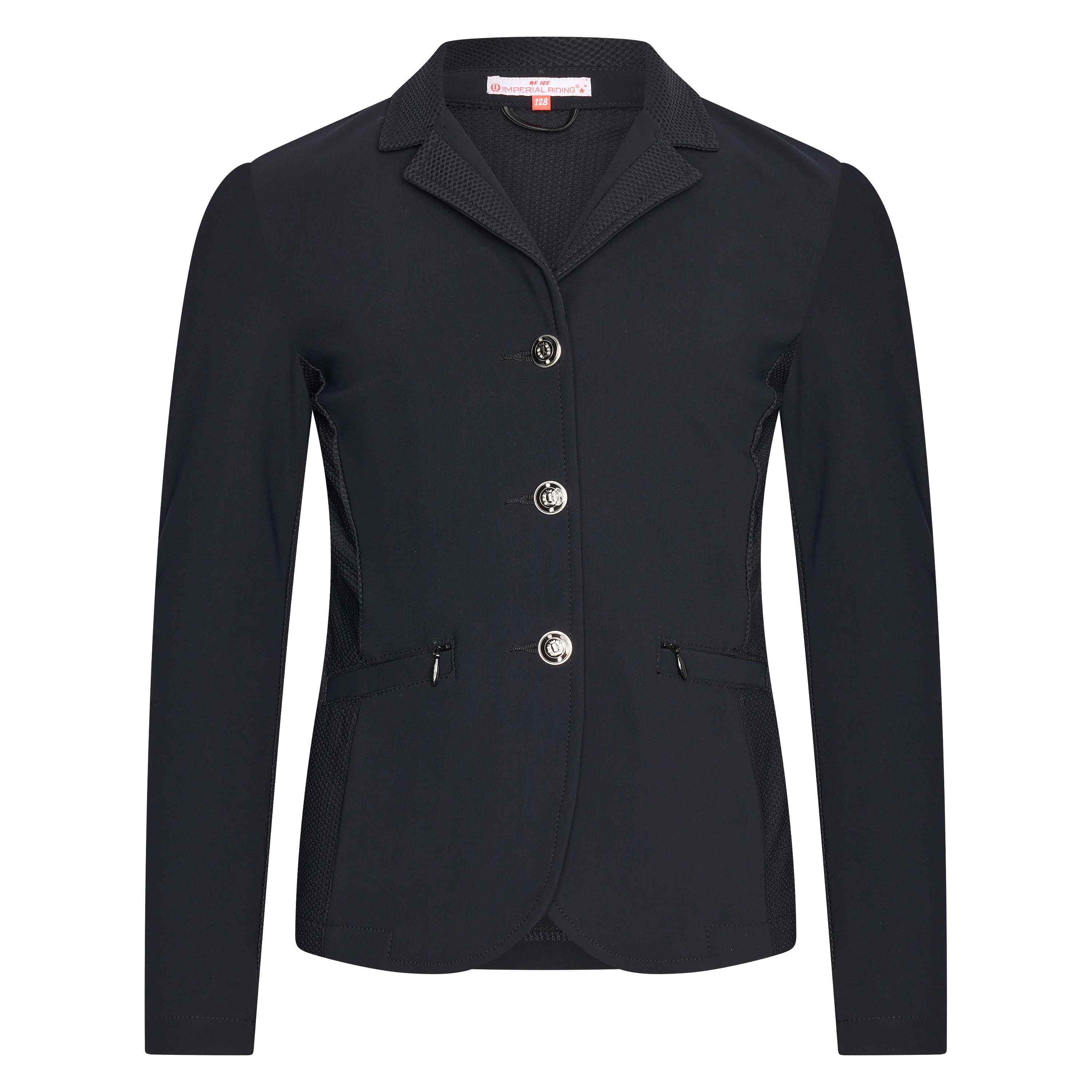 Competition blazer with covered zipper CF and 4 visible branded metal buttons * 4 Way stretch fabric combined with mesh * 2 Single weltpockets with glittertape and Rhinestones closed with blind...