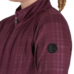 The Zahra base layer is made of breathable and elastic fabric with a soft, brushed interior for added comfort and insulation. The base layer features a concealed half zipper and is adorned with rhinestones around the zipper. It is equipped with a QHP logo on the left arm.