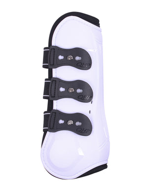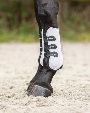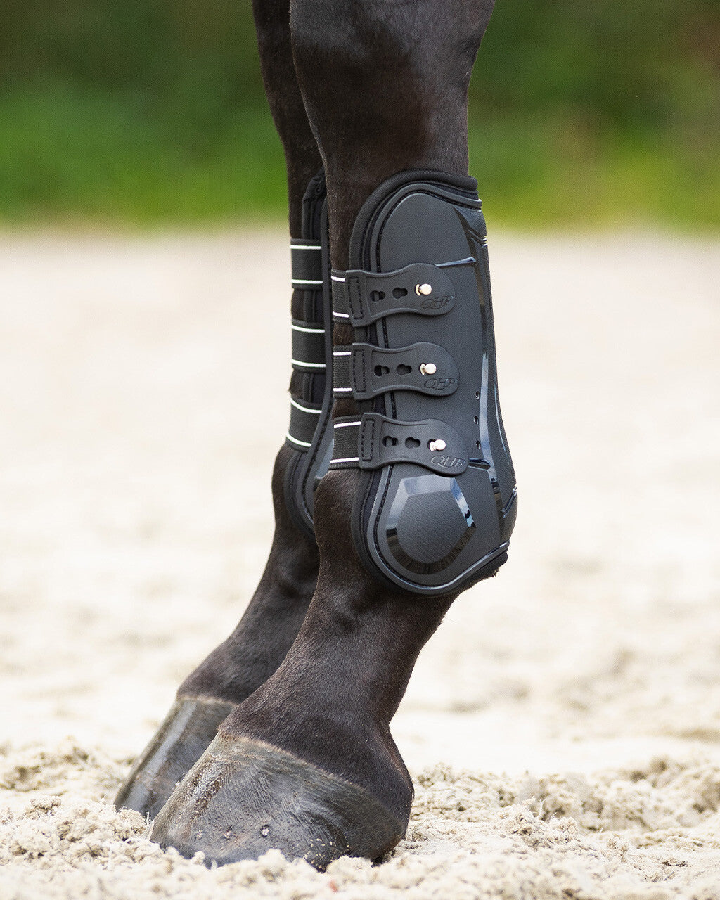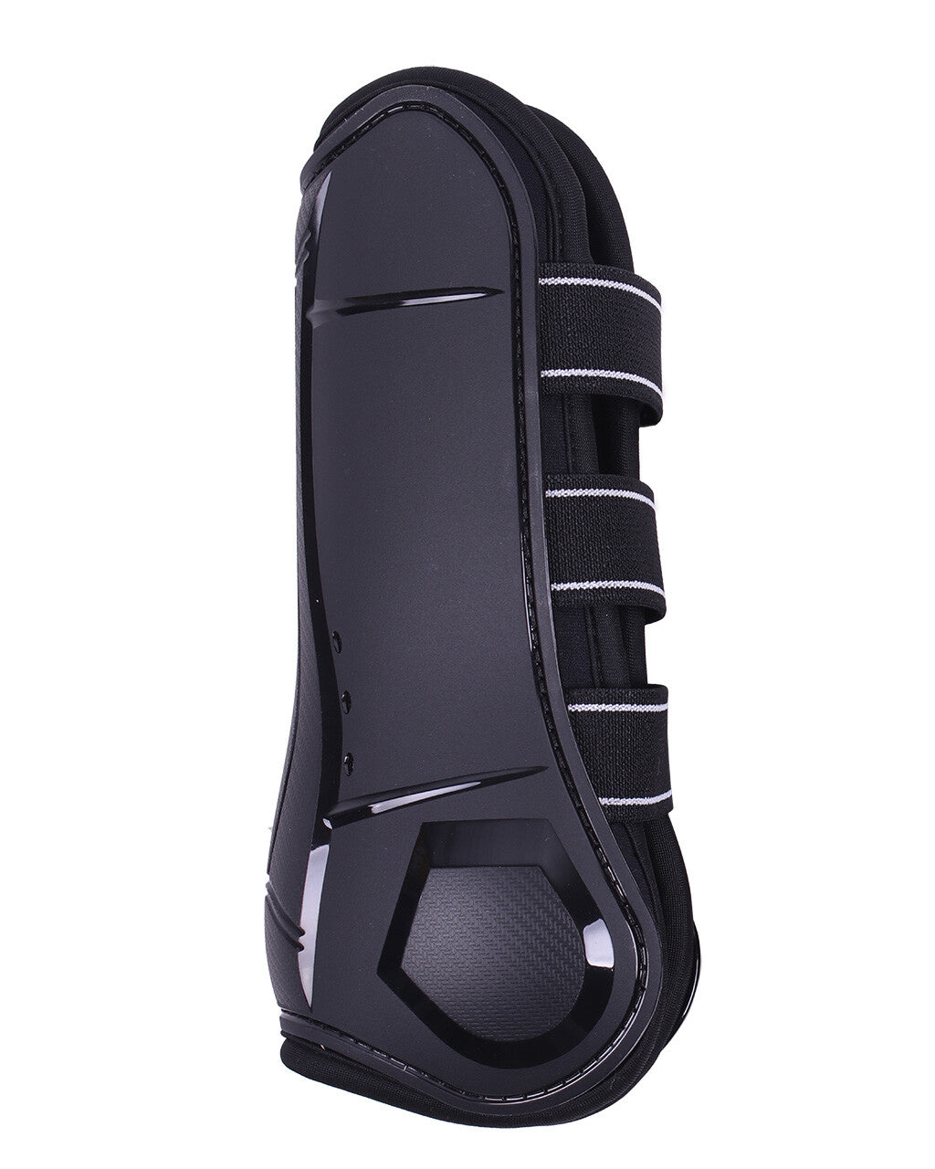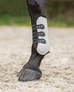Protect your horse's tendons from tapping with these sporty tendon protectors. The special airflow neoprene lining ensures that heat and moisture are properly dissipated. The air vents in the shell next to the tendons ensure that the legs do not overheat. The boots can easily be fastened with elastic quick fasteners.