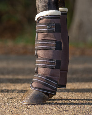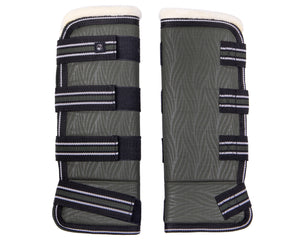 Strong transport boots made of 600D turnout fabric. Protect the legs during transport and prevent injuries because of the thick lining and extra reinforcement on the bottom. The soft lining makes sure the boots are comfortable for the horse. The boots can be attached by the strong straps with hook-and-loop fastener.
