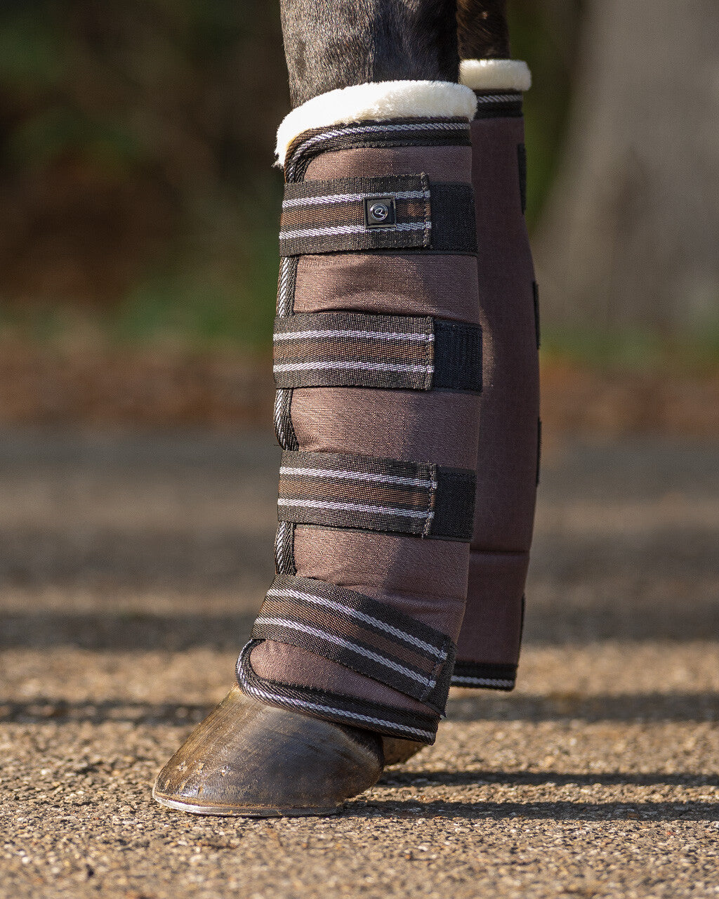 Strong transport boots made of 600D turnout fabric. Protect the legs during transport and prevent injuries because of the thick lining and extra reinforcement on the bottom. The soft lining makes...