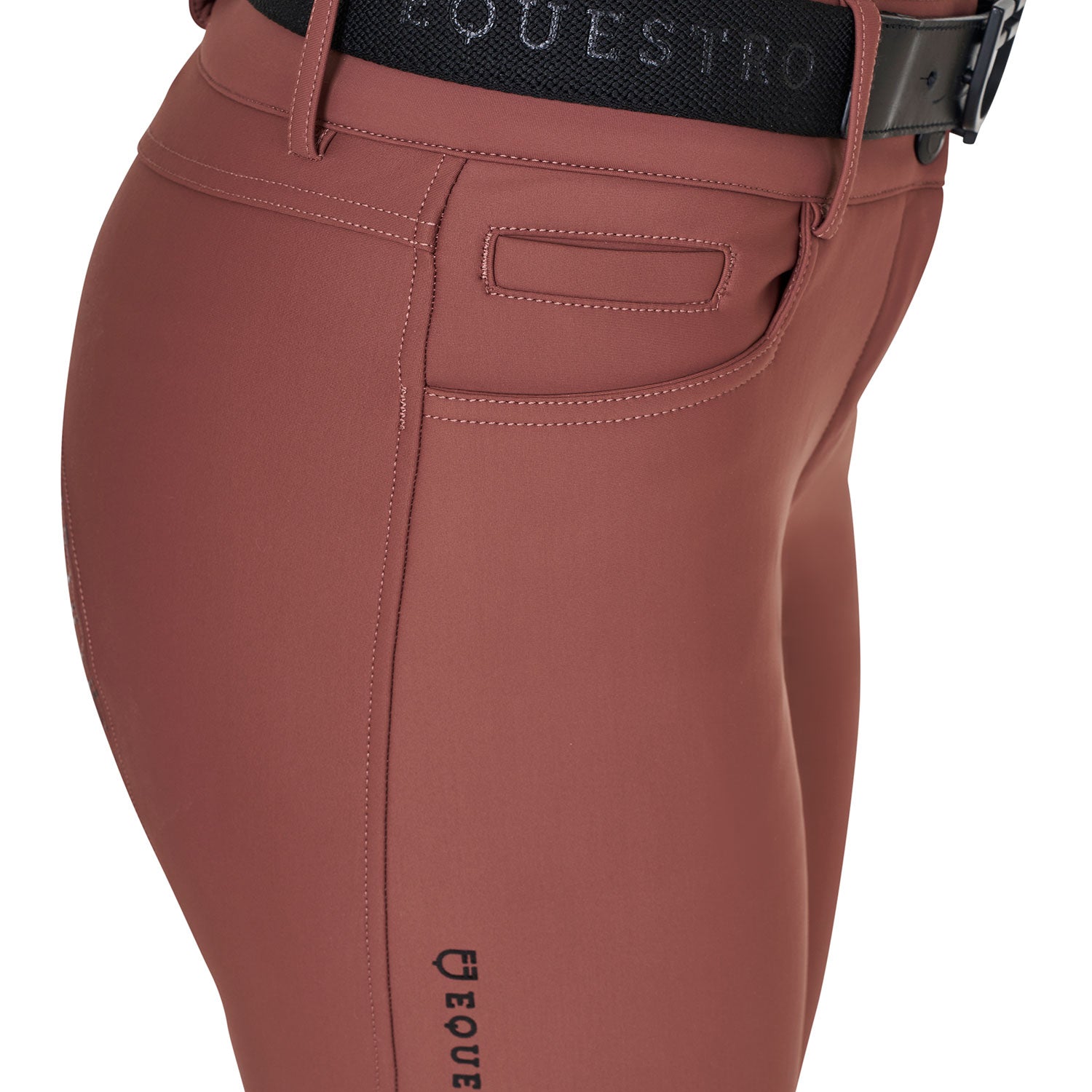 Damridbyxor med hög midja och smal passform (slim fit), tillverkade i tekniskt material med fleecefoder. De är idealiska för att hålla värmen under aktivitet på de kallaste dagarna. Tack vare de mycket mjuka materialen av hög kvalitet med hög andningsförmåga, transporterar de bort svett från kroppen och håller ryttaren torr. De utgör den perfekta balansen mellan komfort och funktionalitet.