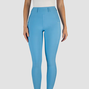 Beautifully designed riding tights in high-quality comfortable and breathable stretch fabric. The riding tights have a flattering fit with a waistband fitted with belt loops. The silicone printed full seat ensures good grip in the saddle. The tights also feature two side pockets, deep enough for your mobile phone.