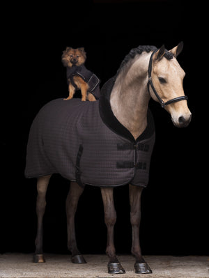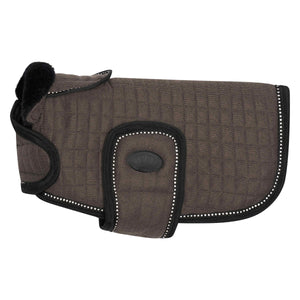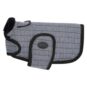 Wool look material outside * Faux fur lining inside * Velcro front closure * Belly flap with velcro closure * Elastics at hind legs * Fancy rhinestone details * Branded rubber...