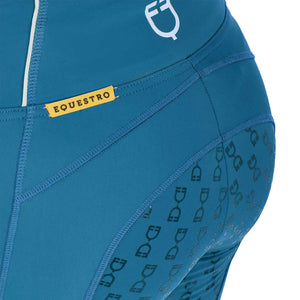 Ridleggings för dam med smal passform (slim fit), tillverkade i ett tekniskt stretchmaterial och fodrade med ett bekvämt och värmande fleecelager. De anpassar sig perfekt efter kroppens former och håller dig varm även under de kallaste dagarna. Leggingsen har en praktisk sidficka som är dekorerad med ett tryck av Equestros logotyp. Vid knät finns ett silikongrepp som fortsätter på baksidan för att förbättra stabiliteten i sadeln och ryttarens sits