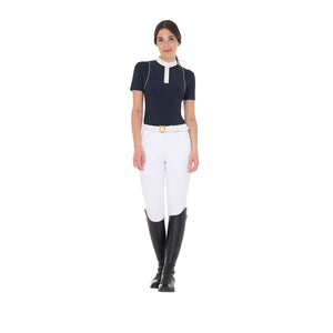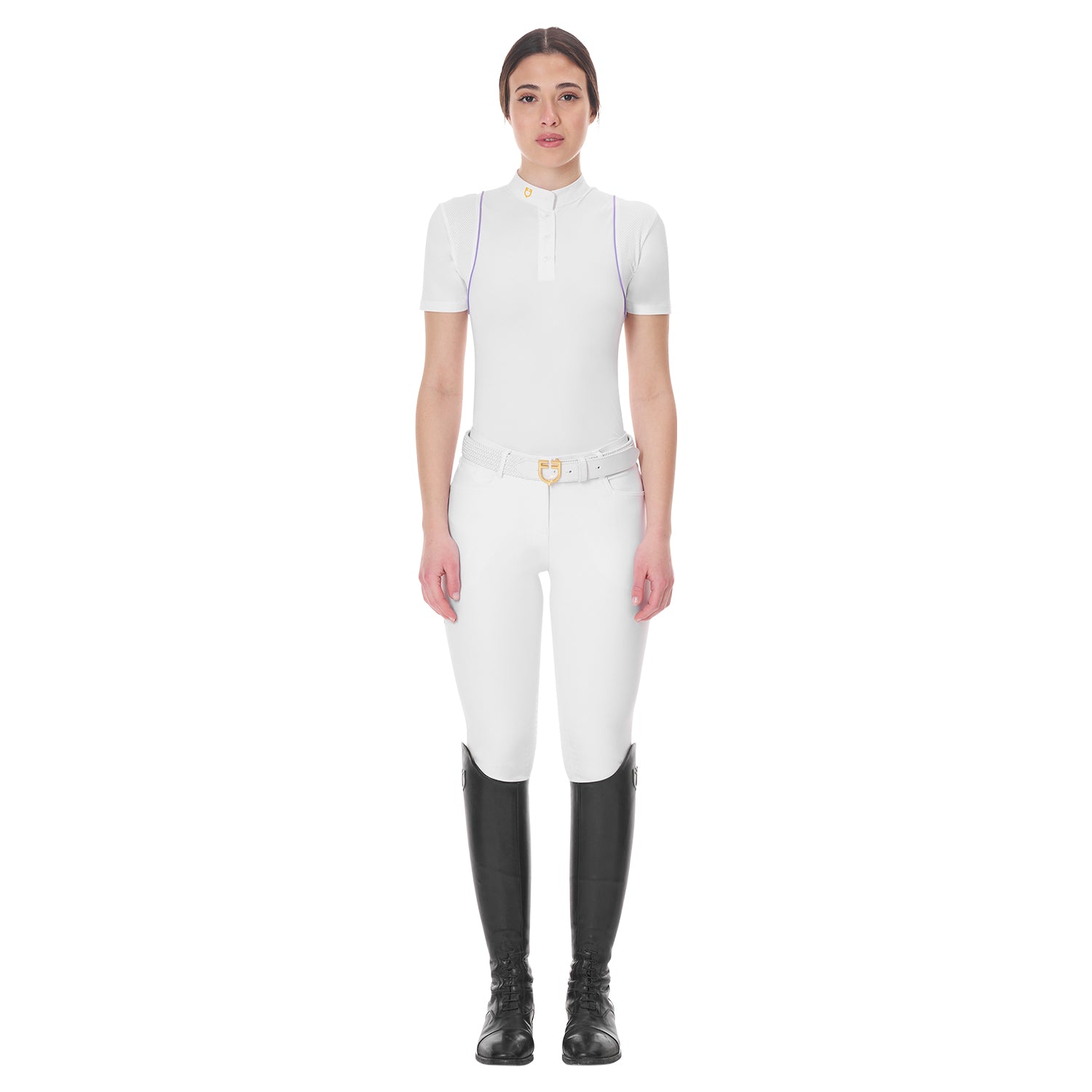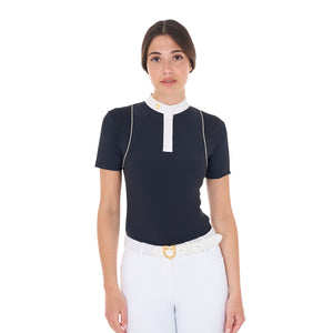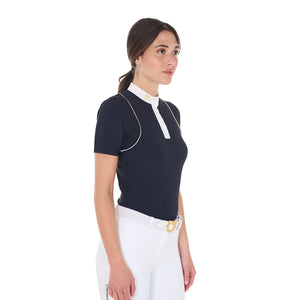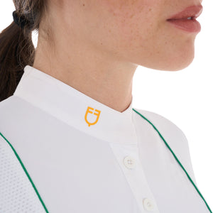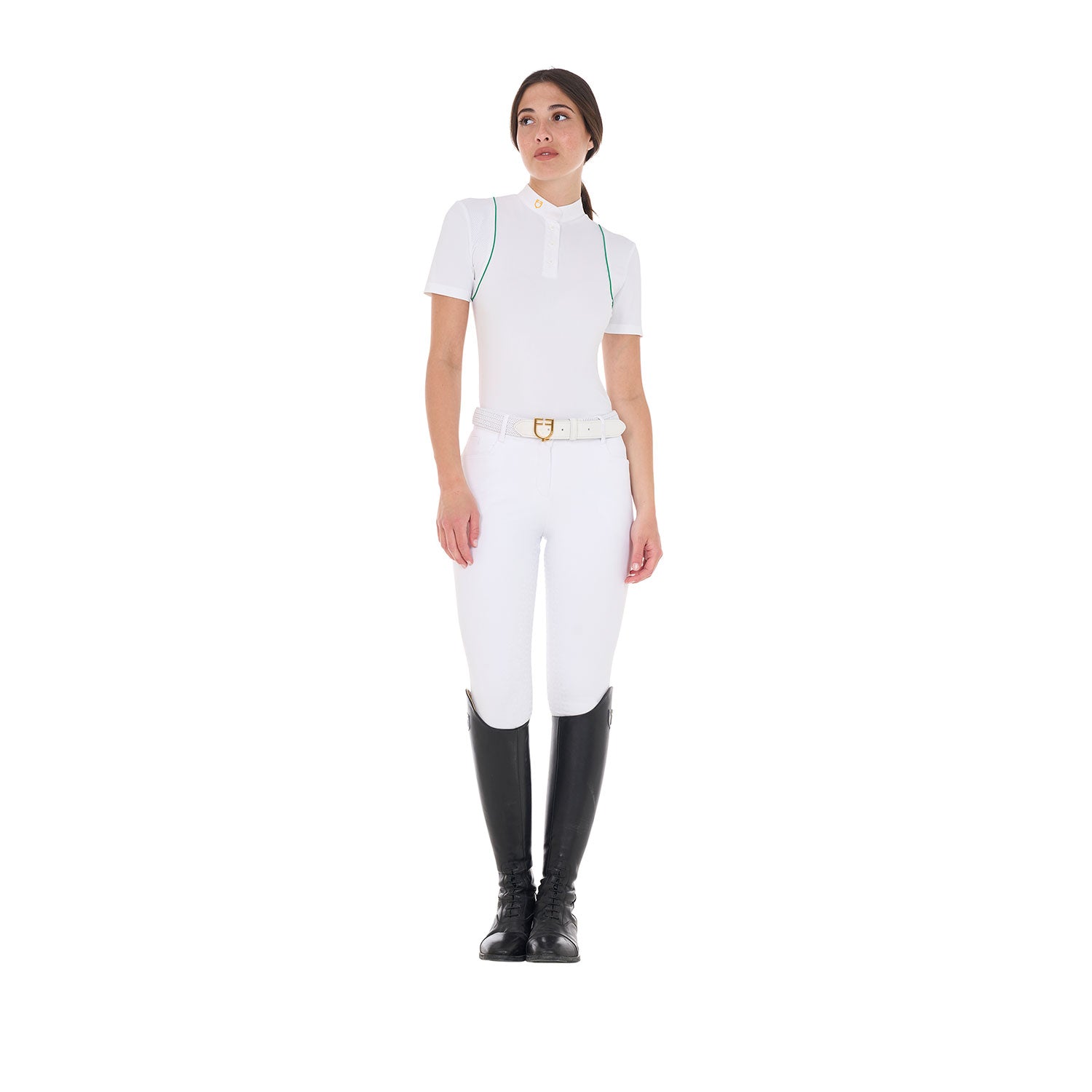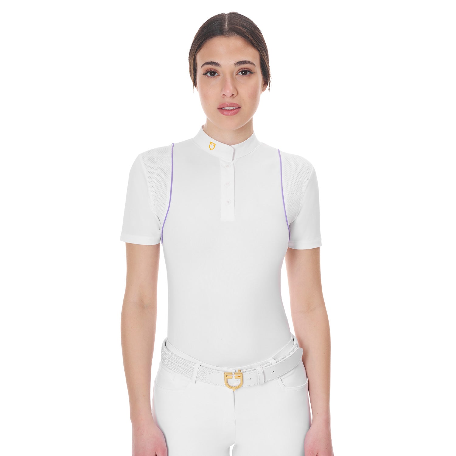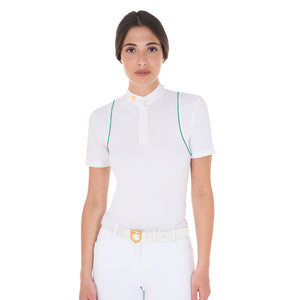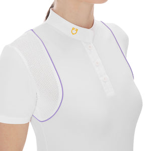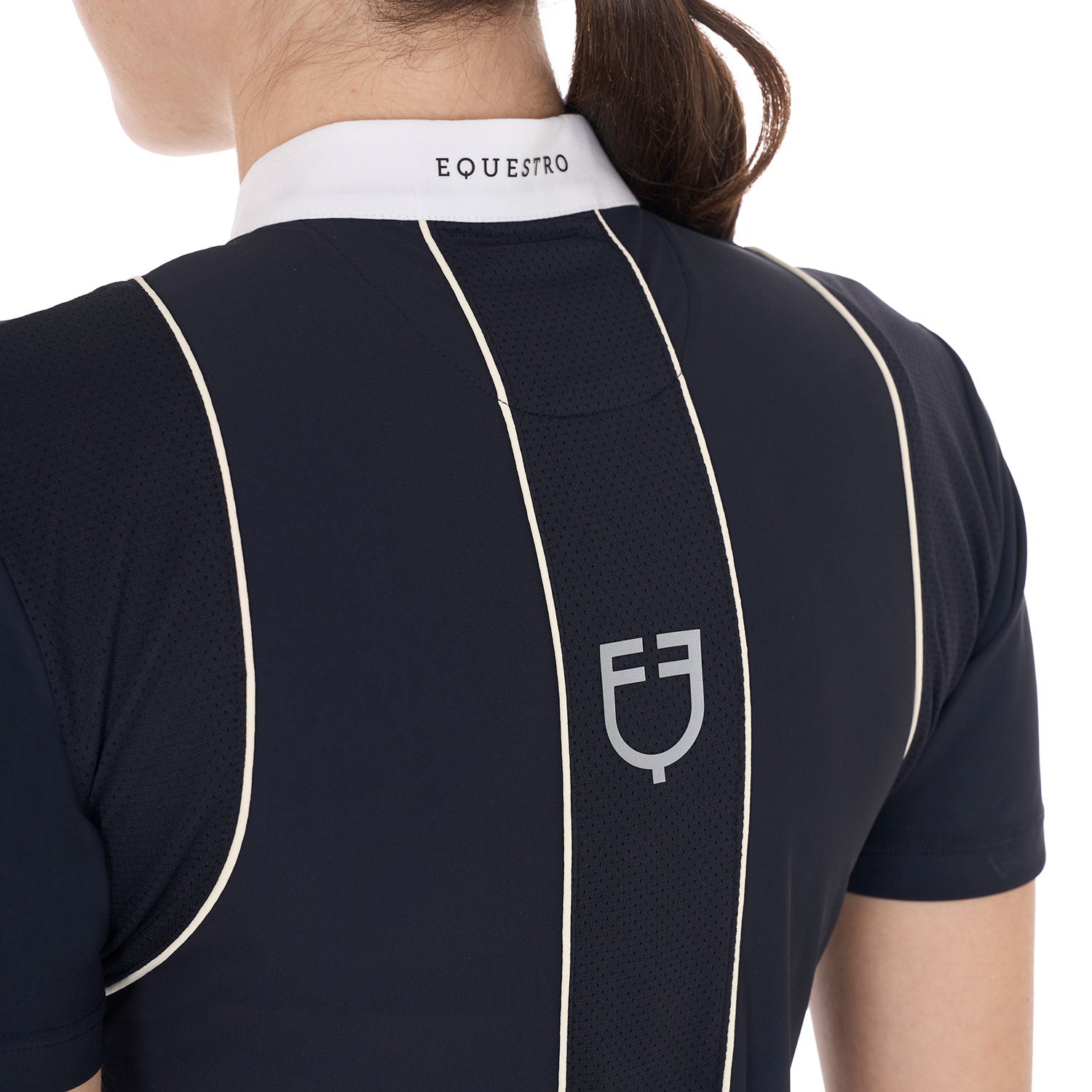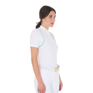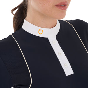 Denna tävlings polo för damer är designad för en slimmad passform och utstrålar elegans och prestanda. Med sina stilrena knappar ger den en klassisk touch. Denna polotröja är perfekt för tävlingar och träning, och kombinerar komfort med en sportig stil.