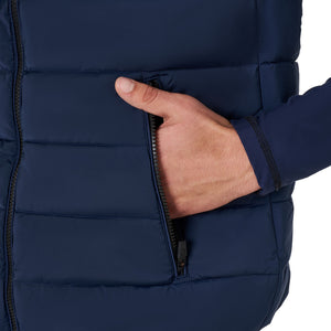 The ribbed knit collar, with its refined two-tone finish, adds a touch of elegance. A versatile vest, designed for freedom of movement, in full style.