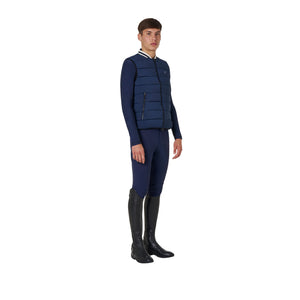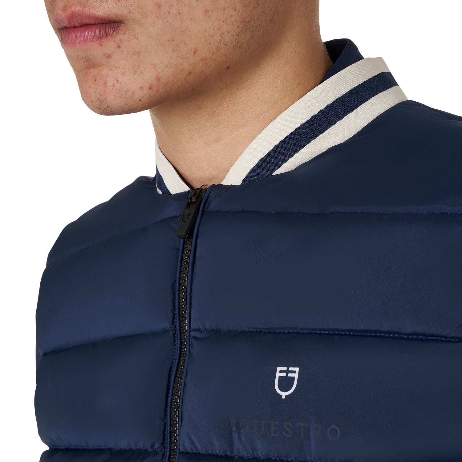 The light padding makes it ideal for cooler days, ensuring warmth without sacrificing lightness. The design is meticulously crafted: a front zip, side pockets with concealed closures, and a silicone patch with the Equestro logo for a sporty touch.