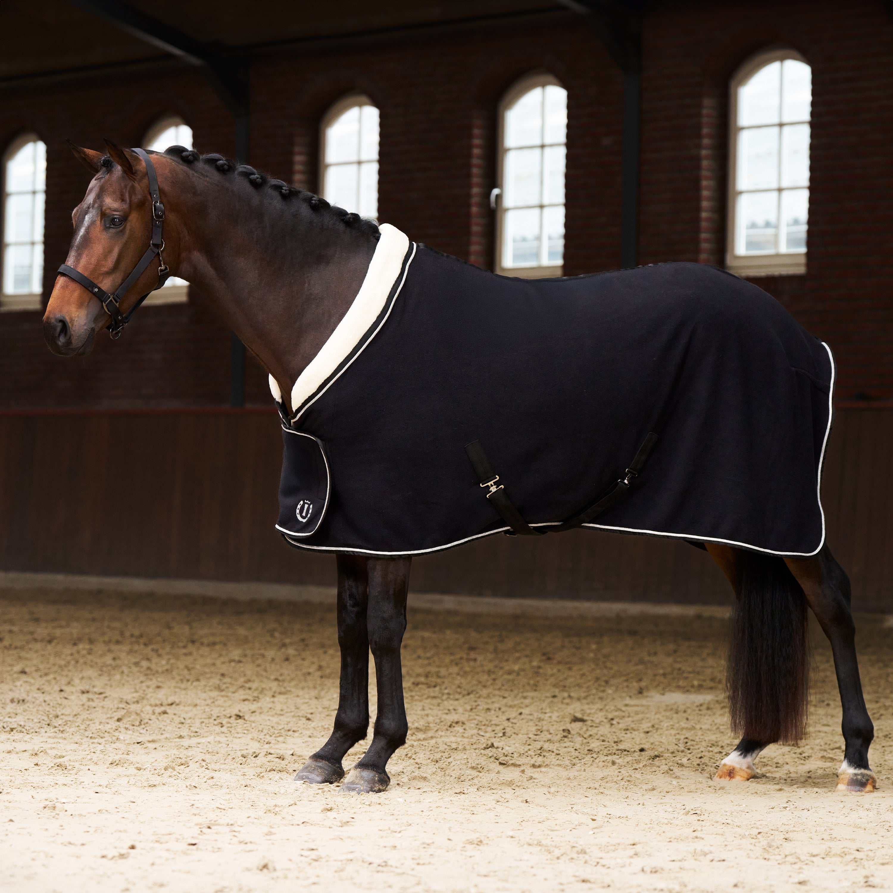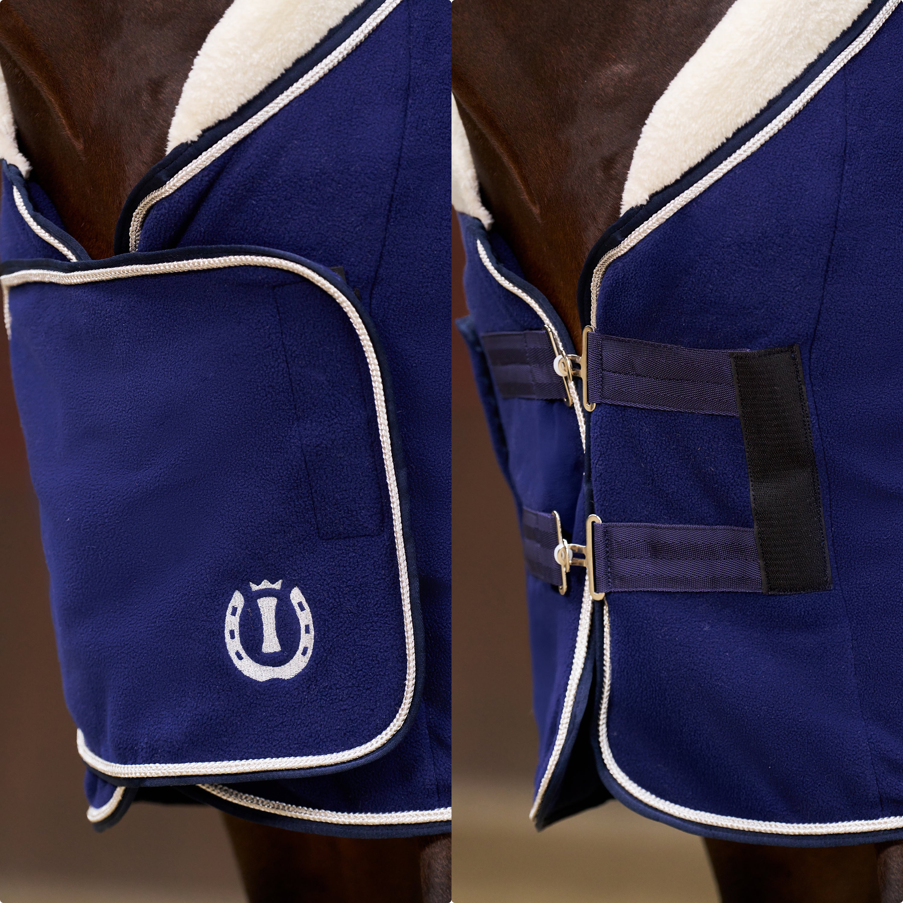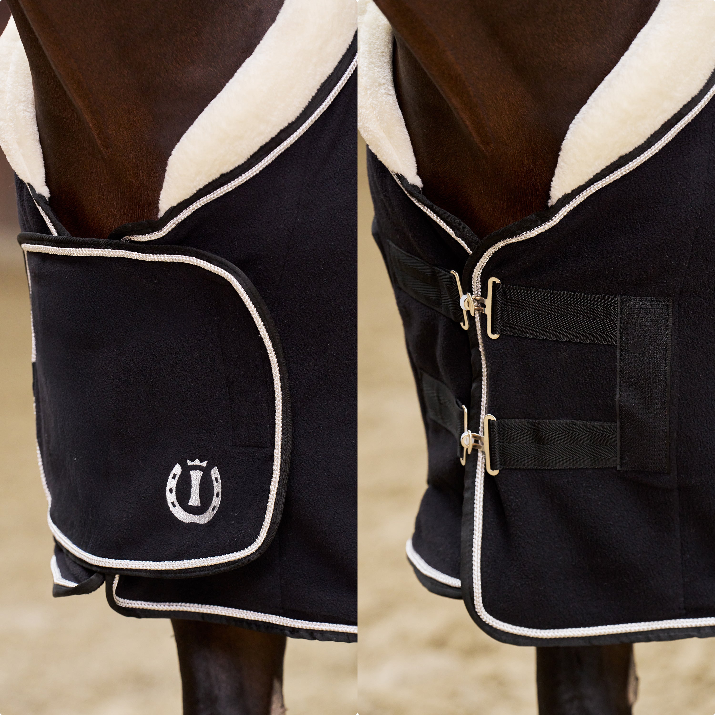 Who says stable essentials can't be a fashion statement? Get ready to turn heads with the IRH-Essential Fleece Blanket, designed for the rider and horse who love to shine. This isn't just any cooler rug; it's a declaration of style, blending ultimate comfort for your equine partner with Imperial Riding's signature bold glamour. Whether you're cooling down after an energetic ride or simply want your horse looking fabulous at the show ground, this blanket ensures they do it with confidence and flair. The plush faux fur neckline adds a touch of luxury, while the secure double front closure, complete with a Velcro front flap and sturdy cross girths, ensures it stays perfectly in place, letting your horse relax in absolute style. The elegant piping cord and metallic logo embroidery add those crucial finishing touches, making sure you both make an entrance.