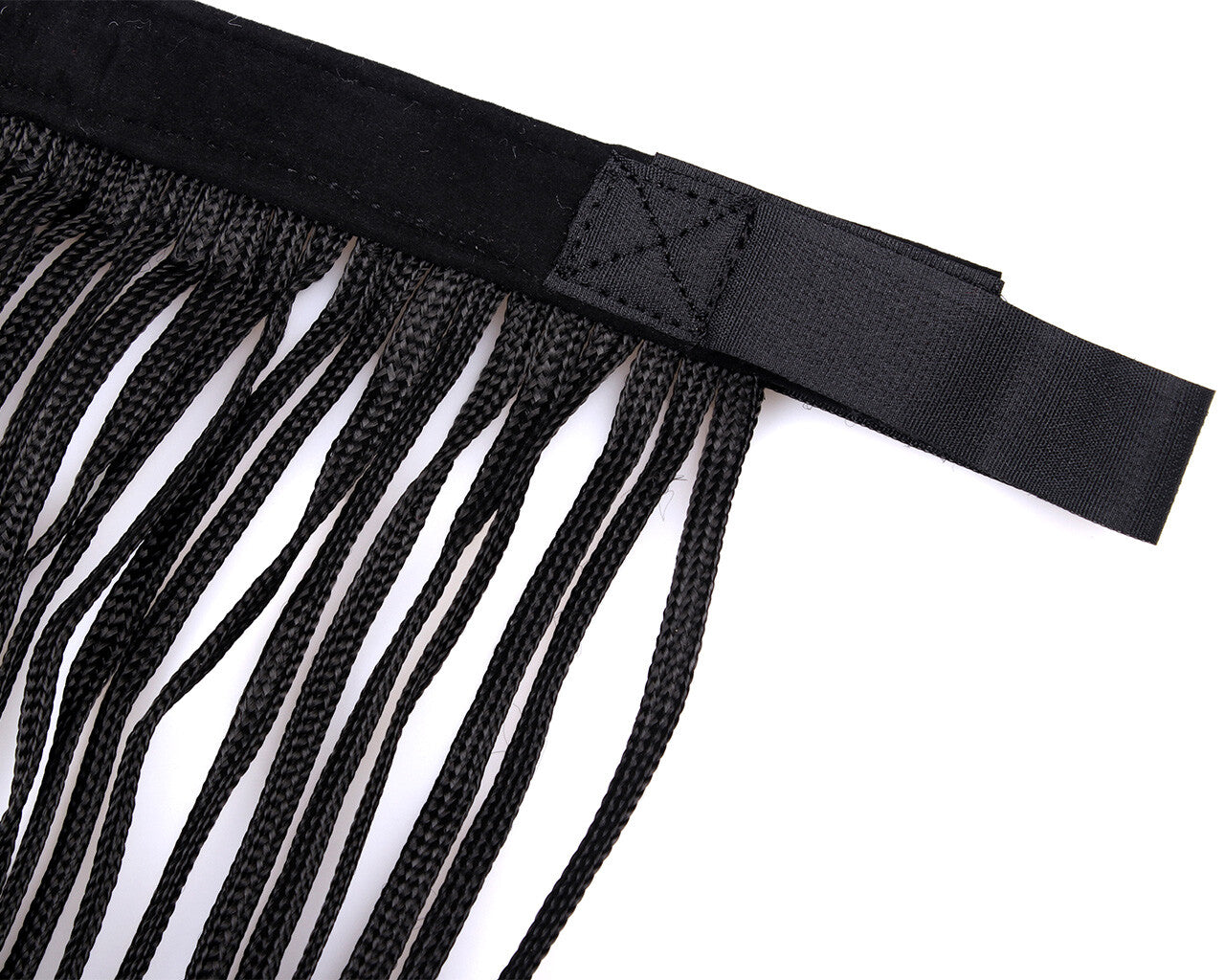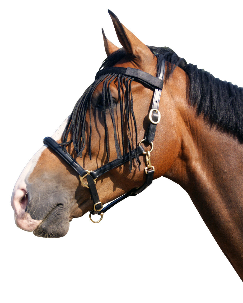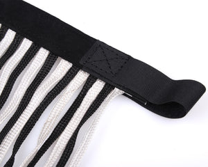 With a fly fringe your horse can ward off insects from it's head. Easy to attach to a head collar with Hook-and-loop fastener. Features a striking pattern on the browband. Material:...