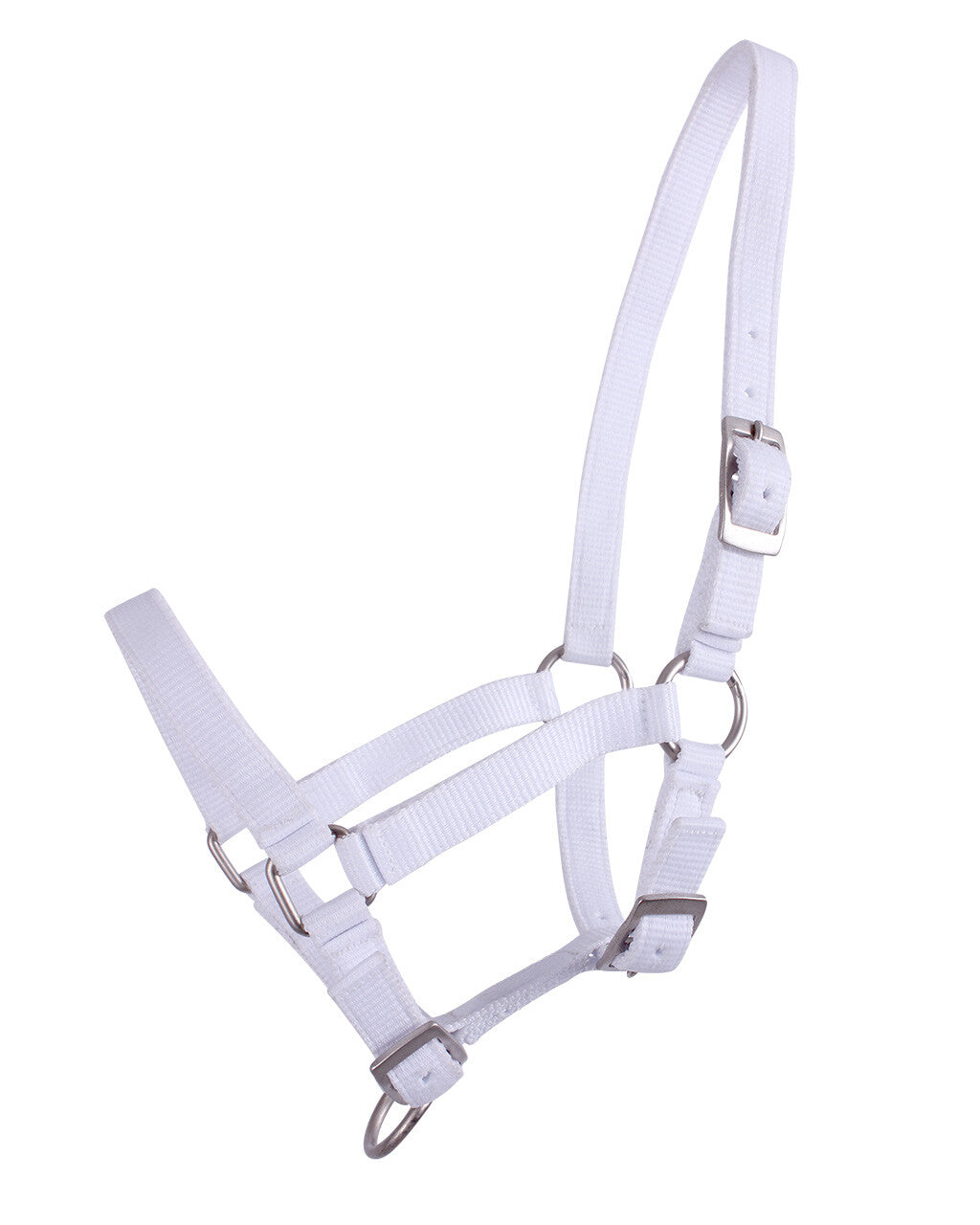 Strong foal head collar which is adjustable at three points so it can grow along with the foal. Features satin finish stainless steel hardware and is available in different foal sizes.