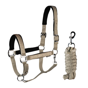| Halterset med snygga tonala glitterdetaljer, levereras med ett 200 cm blyrep. Grimman är justerbar vid både huvudstycket och nosgrimman. Produktspecifikationer: - Tonala glitterdetaljer - Grimma inklusive 200 cm blyrep - Både huvudstycket och nosgrimman justerbar Material: 100 % polypropylen, - alloyle-stoppning: zink- och neoprenstoppning stål |