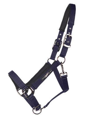 Luxury head collar with soft lining in the head piece, cheeks and noseband. This ensures a high wearing comfort. The head collar is adjustable in two places at the head piece...
