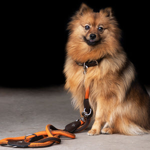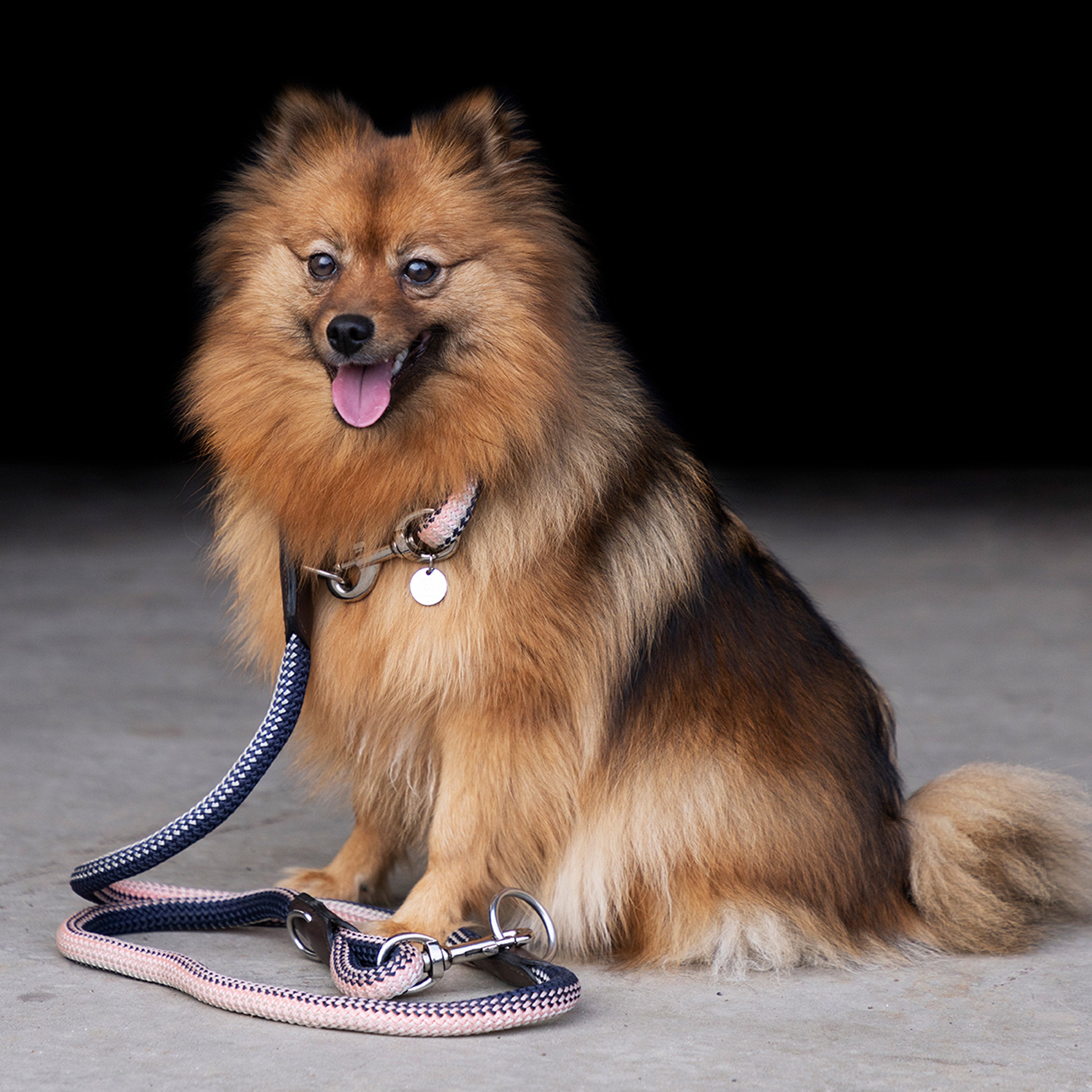 Dog collar made out of multiple coloured rope in combination with leather for a classical look * D-ring to attach the leash to * With special HV Polo metal dog coin with can be engraved with the name of your own dog * XS: 35cm * S: 40cm * M: 50cm * L: 60cm * XL: 65cm