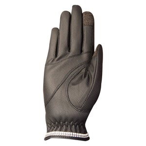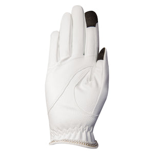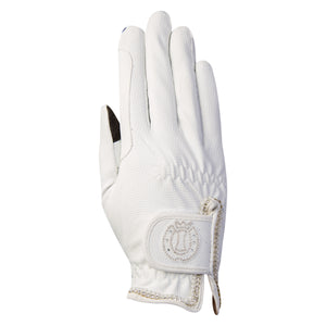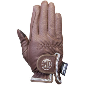 Fancy gloves with pearls, rhinestones and logo embroidery