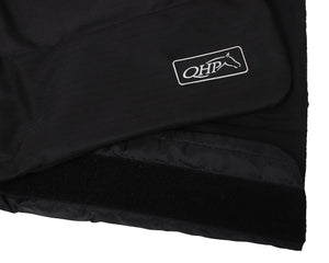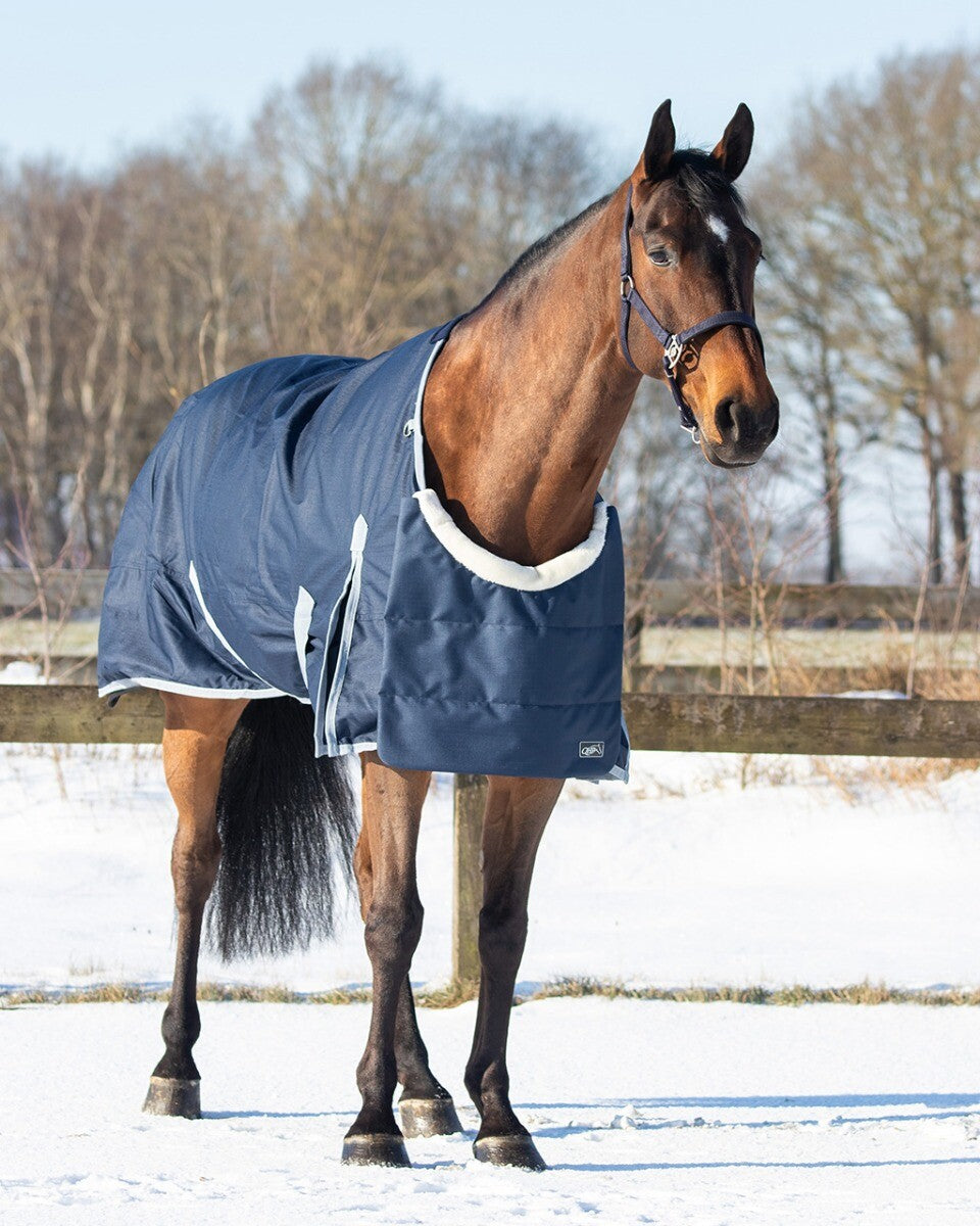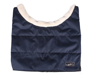 Chest protector Ontario features soft padding and a faux wool collar. A chest protector is used under a rug and the perfect solution for horses that are susceptible to chafing. The protector is placed around the front closure of the rug and can be closed with a hook-and-loop fastener at the bottom.