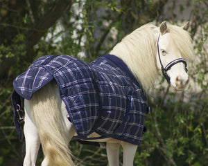 The stable rug is a light rug which is worn indoors. A stable rug breaths better than a turnout rug and keeps the horse warm when it is cold or when there is a draft. A stable rug is essential when a horse has been clipped. This rug has special measurements for Falabellas.