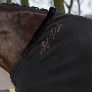 Fleece blanket made out of a fine and soft material for a perfect fit * With fleece fur at withers for protection * Double front closure * Detachable cross singles under belly * Tail cord * HV Polo embroidery along neckline