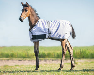 Welcome your foal with a rug from our summer collection. Because your foal grows quickly, this rug can be adjusted in length by means of wide hook-and-loop fasteners at the front. The rug grows in this way along with the foal! In combination with the foal head collar from the summer collection you are ready for the summer season.