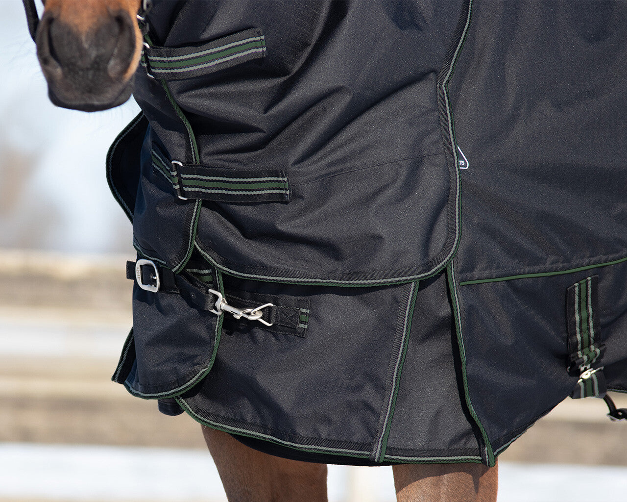 This combo set is ideal for the winter. The under rug and neck section can be added to the rug for extra warmth when needed. The neck and under rug can be attached to the rug in different spots to keep everything in place.