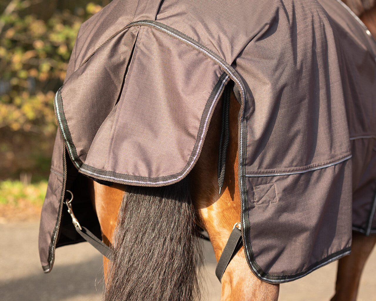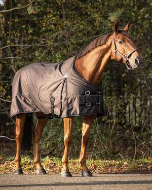 Strong, waterproof and breathable winter rug with 300 gram filling that keeps a horse warm in wind and lower temperatures. The rug has an adjusted fit at the chest so that there is no opening when a horse has a wider chest. A loose neck can be attached to the D-rings at the neck.