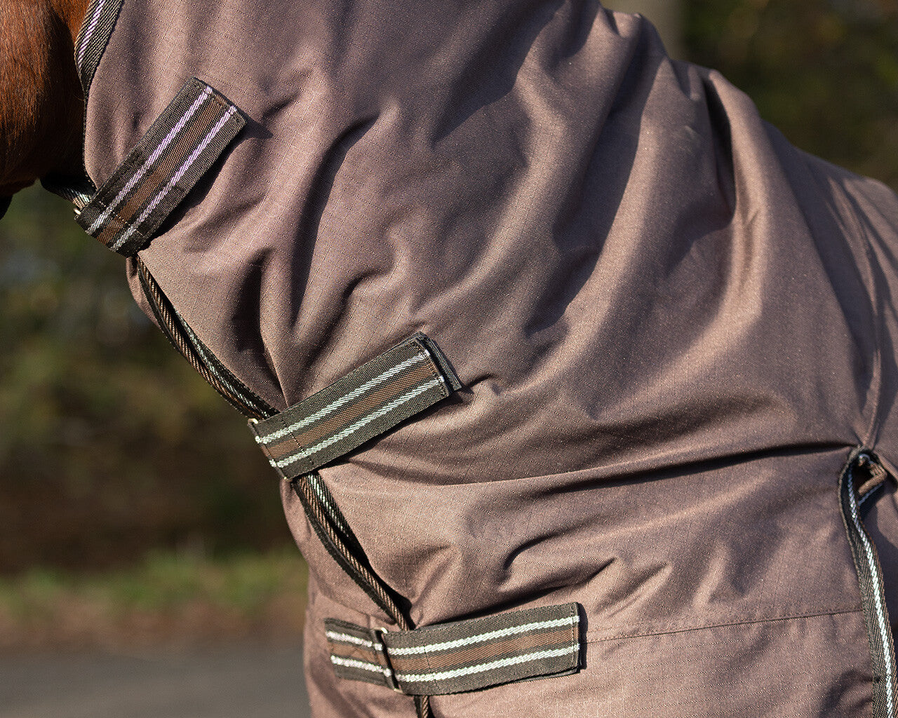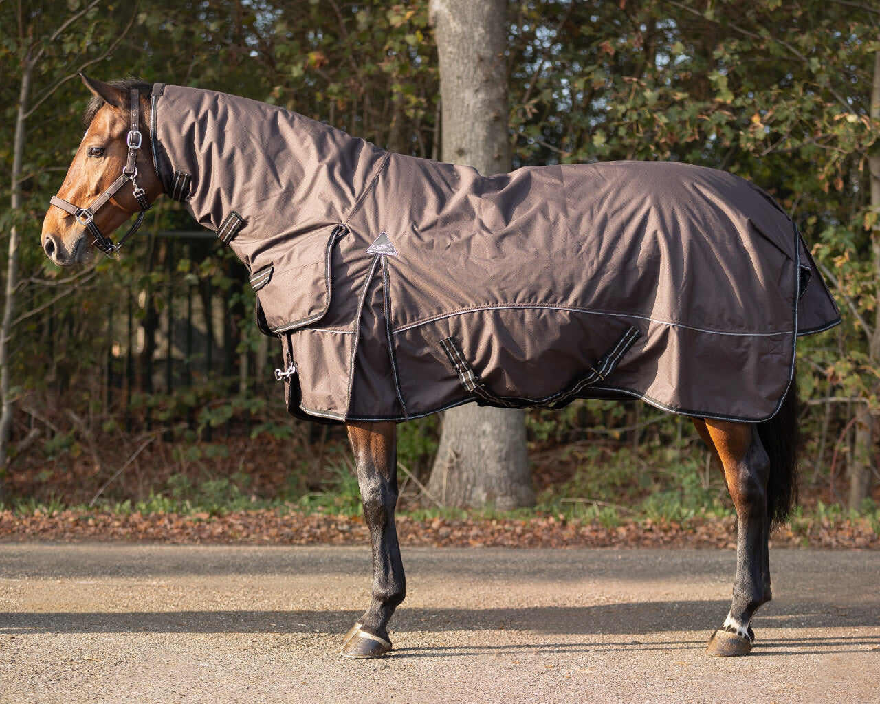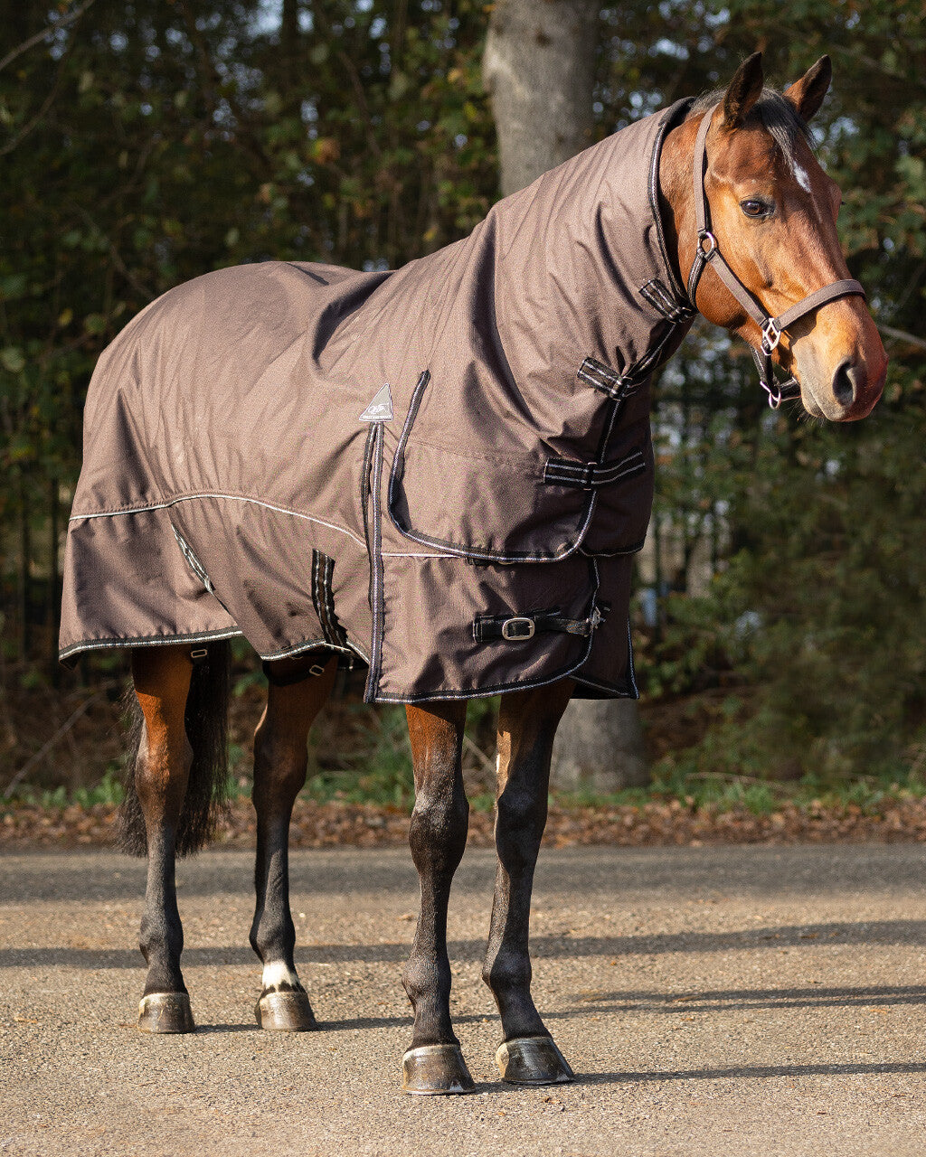 Strong, waterproof and breathable winter rug with 300 gram filling that keeps a horse warm in wind and lower temperatures. The rug has an adjusted fit at the chest so that there is no opening when the horse has a wider chest. Equipped with a fixed neck with filling so that the horse is extra protected against cold and rain. The special shape of the neck prevents rain and wind from blowing in at the chest.