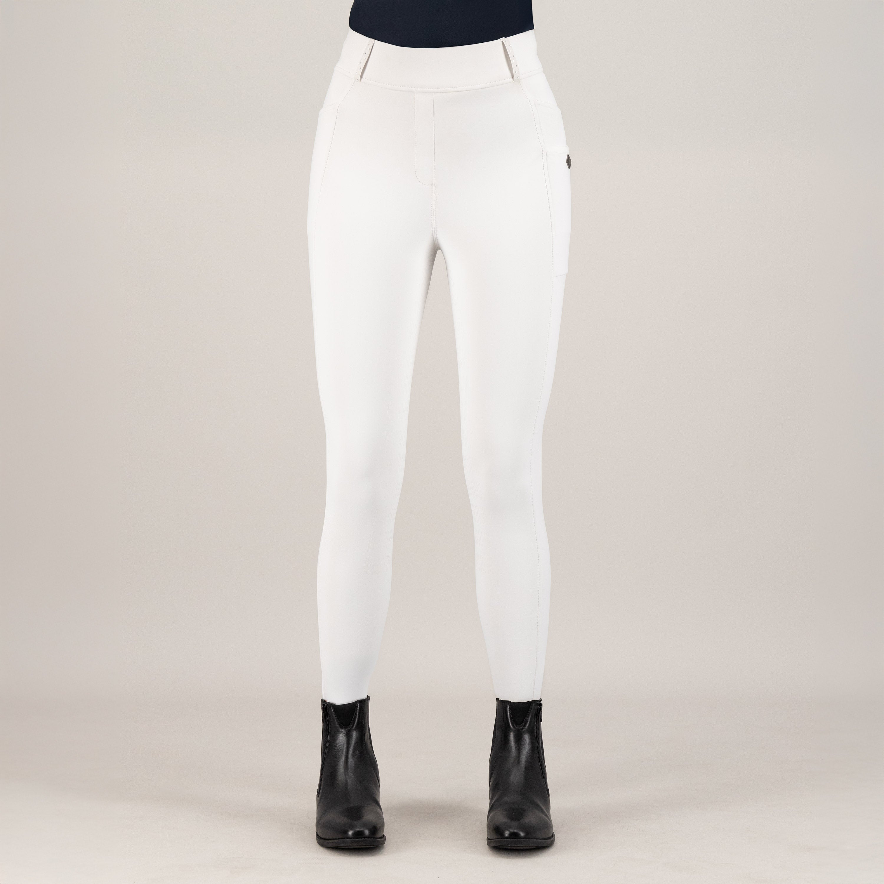 Ready to truly shine in the arena? The IRH-Tamara Competition Riding Tights are designed for riders who refuse to blend in. These aren't just any white competition tights; they're your secret weapon for a confident performance. Crafted with a premium, four-way stretch fabric, you'll experience ultimate freedom of movement and a no-see-through guarantee, so you can focus entirely on your ride. The elastic waistband ensures a snug, comfortable fit, while the cleverly placed phone pockets on each side keep your essentials secure and easily accessible. And for that unmistakable Imperial Riding touch of glamour? You'll find dazzling crystal rhinestones on the front belt loops and a chic metal coin detail on the right pocket. Ride bold, ride brilliant!