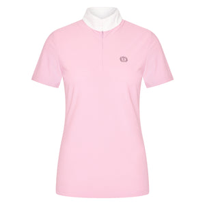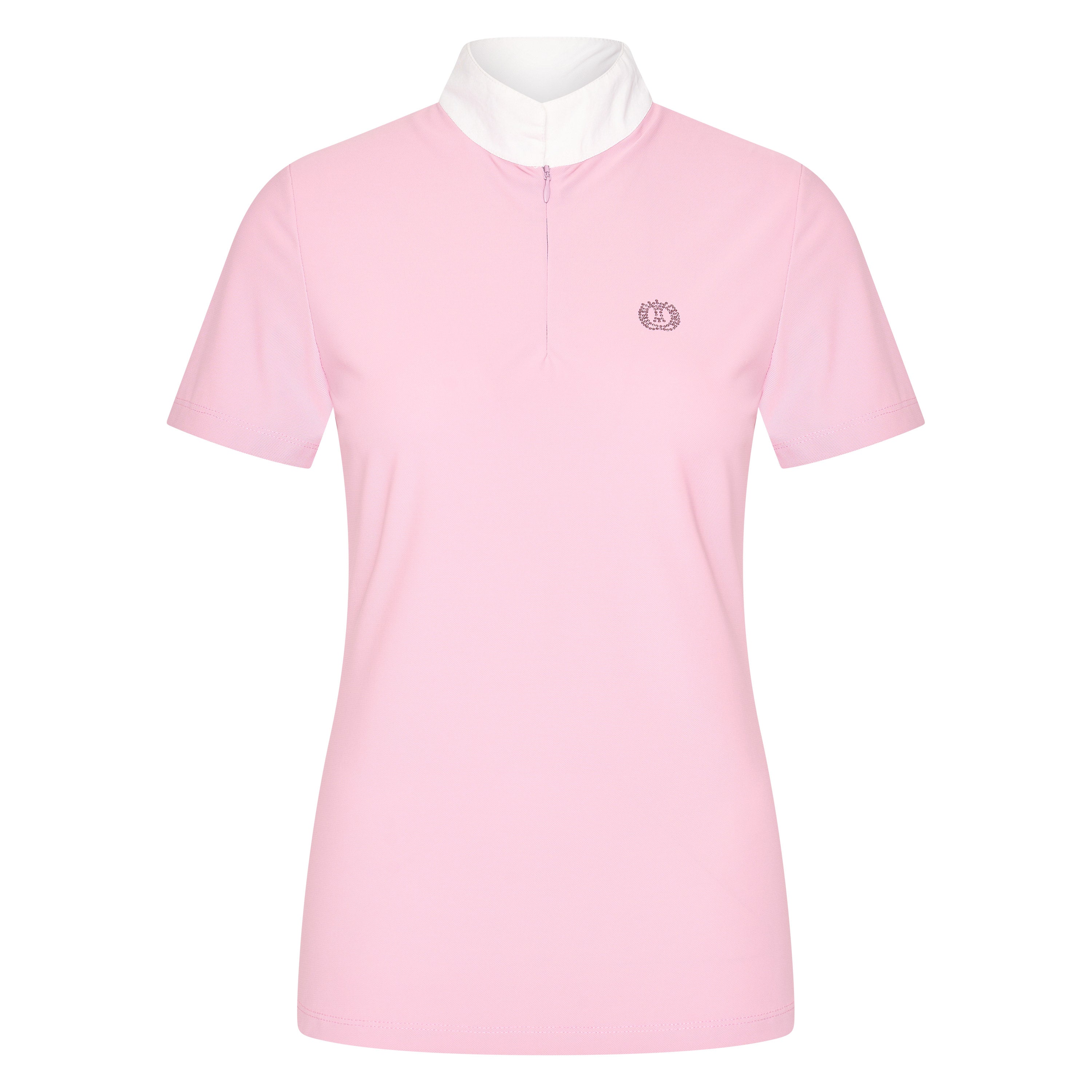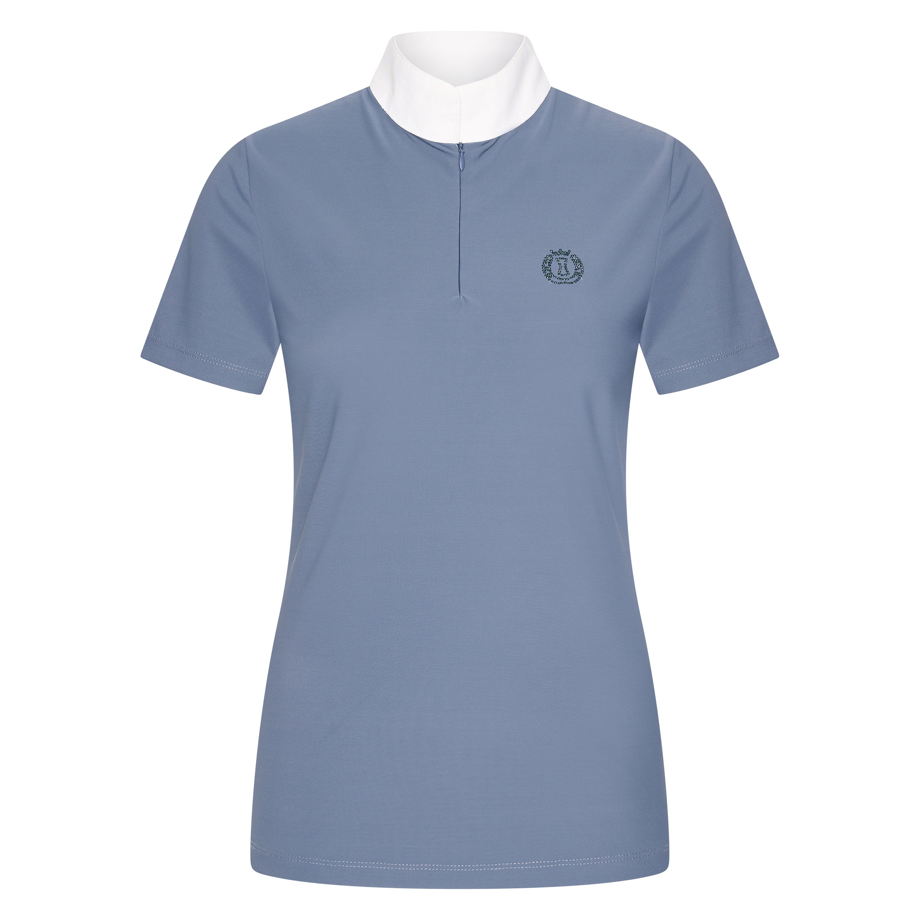 Elevate your competition attire with our latest addition - the competition shirt in incredibly soft mesh fabric. Designed with a collarstand featuring a sleek blind zipper enclosure, this shirt exudes both style and functionality. The short sleeve design provides comfort and ease of movement, while the crystal stone logo artwork on the left chest adds a touch of elegance. Stand out from the competition in this must-have shirt.