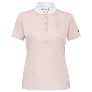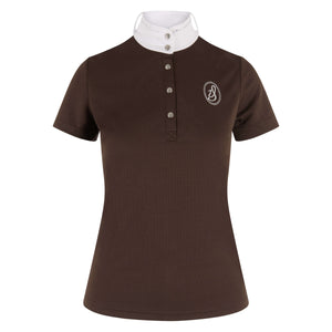 Fashionable ladies competition shirt with stones on collar and chest embroidery * With short sleeves