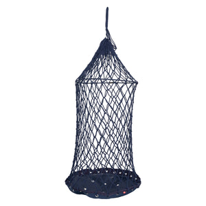 Haynet with a ring and a bottom for easy loading of hayLength of hay net: 110 cmCross-sectional size: 49 cmSize of the maize: 6 x 6 cm