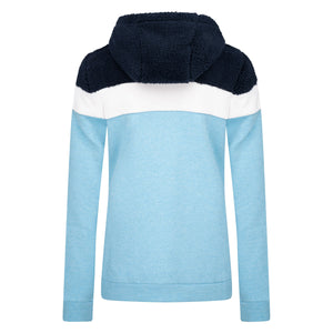 You go girl! Mix & match of soft jersey, lambs fleece and nicky velours in a full 2-way zipper hooded sweater with colour block details. Pocket entrance in the front part...