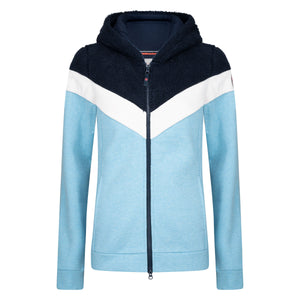 You go girl! Mix & match of soft jersey, lambs fleece and nicky velours in a full 2-way zipper hooded sweater with colour block details. Pocket entrance in the front part seam. The badge on the wearers left sleeve is with our famous IR logo in soft rubber finish. The neckline is clean finished with a multi colour stripe tape.
