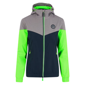 Colour-blocking jacket – Summer Nights is a great colour-blocking hooded jacket with a two-coloured 2-way mid-size profile zip, diagonal side pockets, and a chic IR logo patch. The jacket has a medium-high hem, and medium-high elastic cuffs on the sleeves. A 3D logo patch featuring the horseshoe and crown has been sewn on to the left side of the chest. The hood features contrasting inner lining, and it has a drawstring with cord stoppers. On the back, it features a large superimposed pocket with grippy XL puller. The neon details on the zip pullers and the drawstring are additional eye catchers.