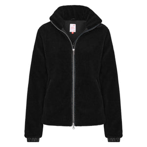 Faux fur jacket * Contrast fabric parts * 2-way zipper closure at front * Branded pullers * 2 insert pockets with blind snap button closure * Soft jersey lining * Standing collar * Elastic at cuff * Logo badge at left sleeve