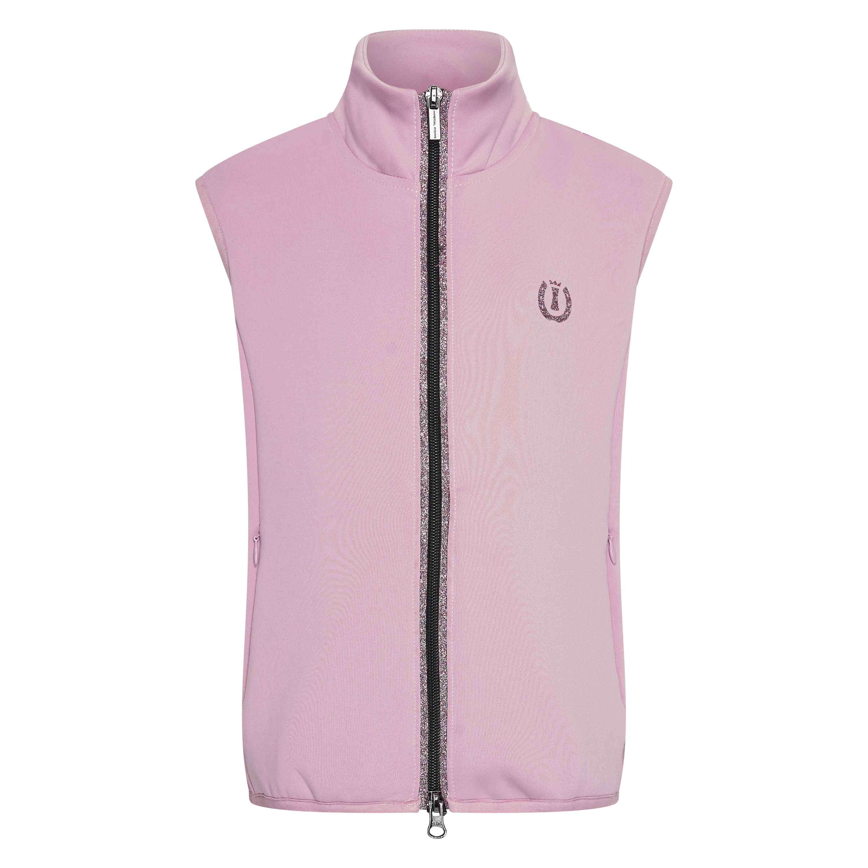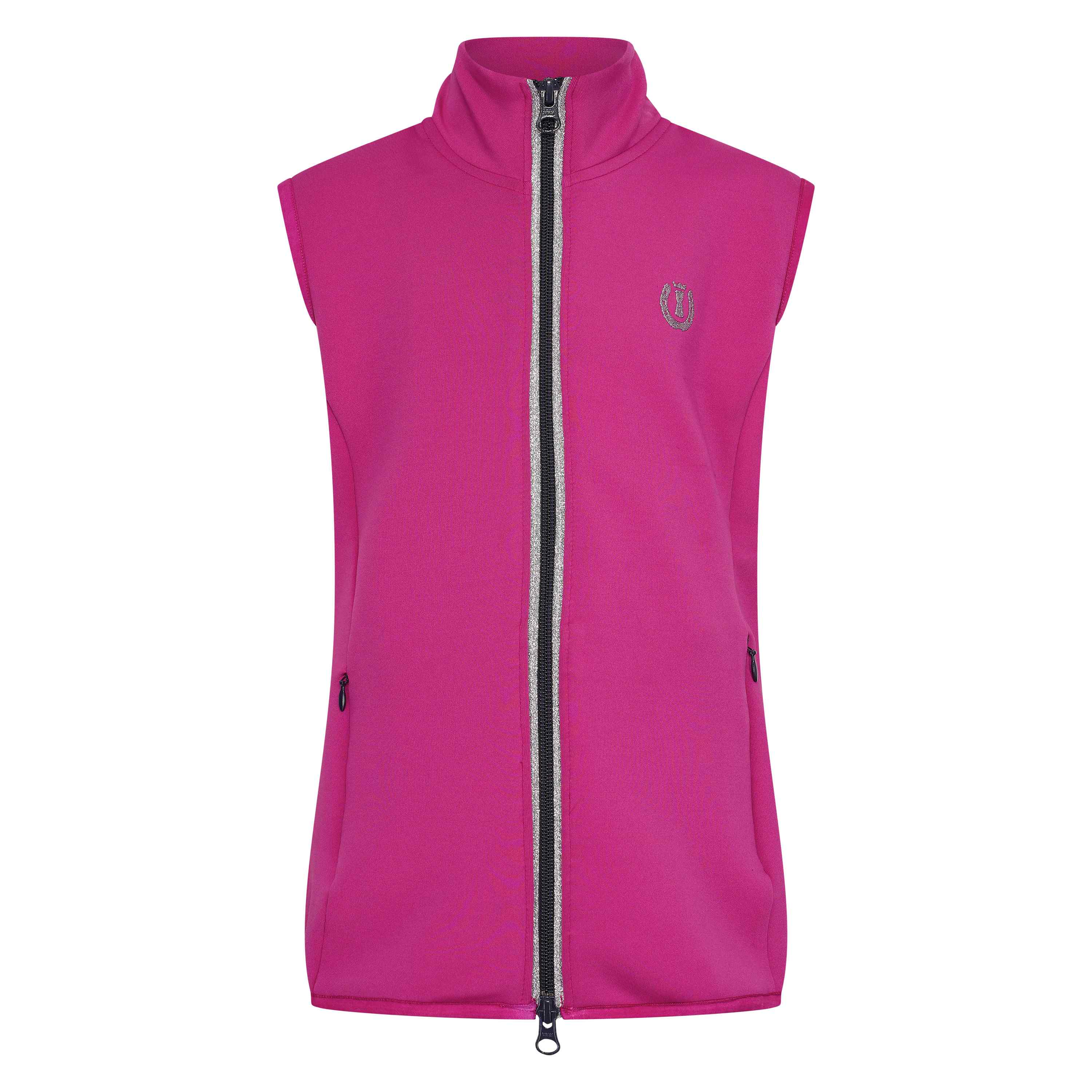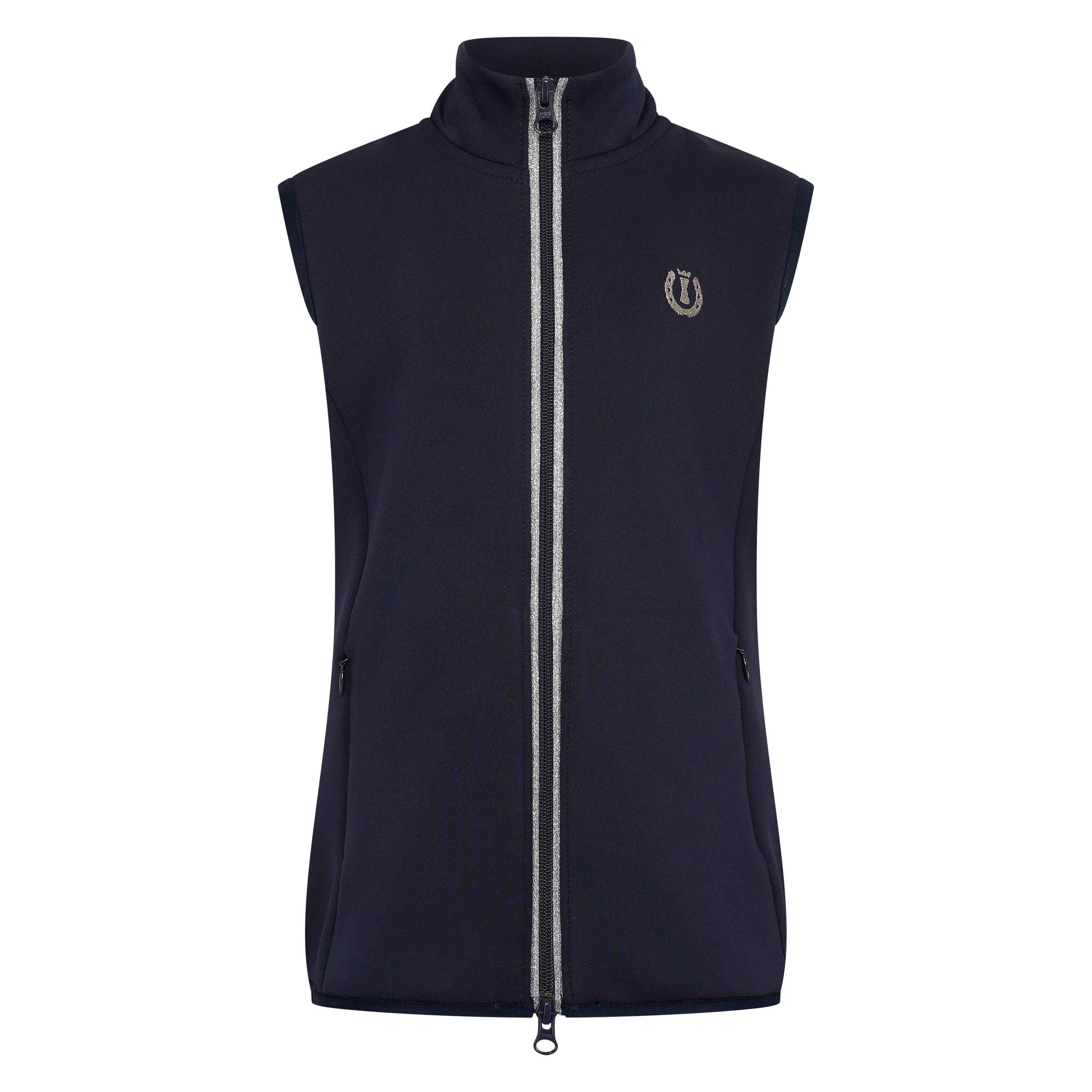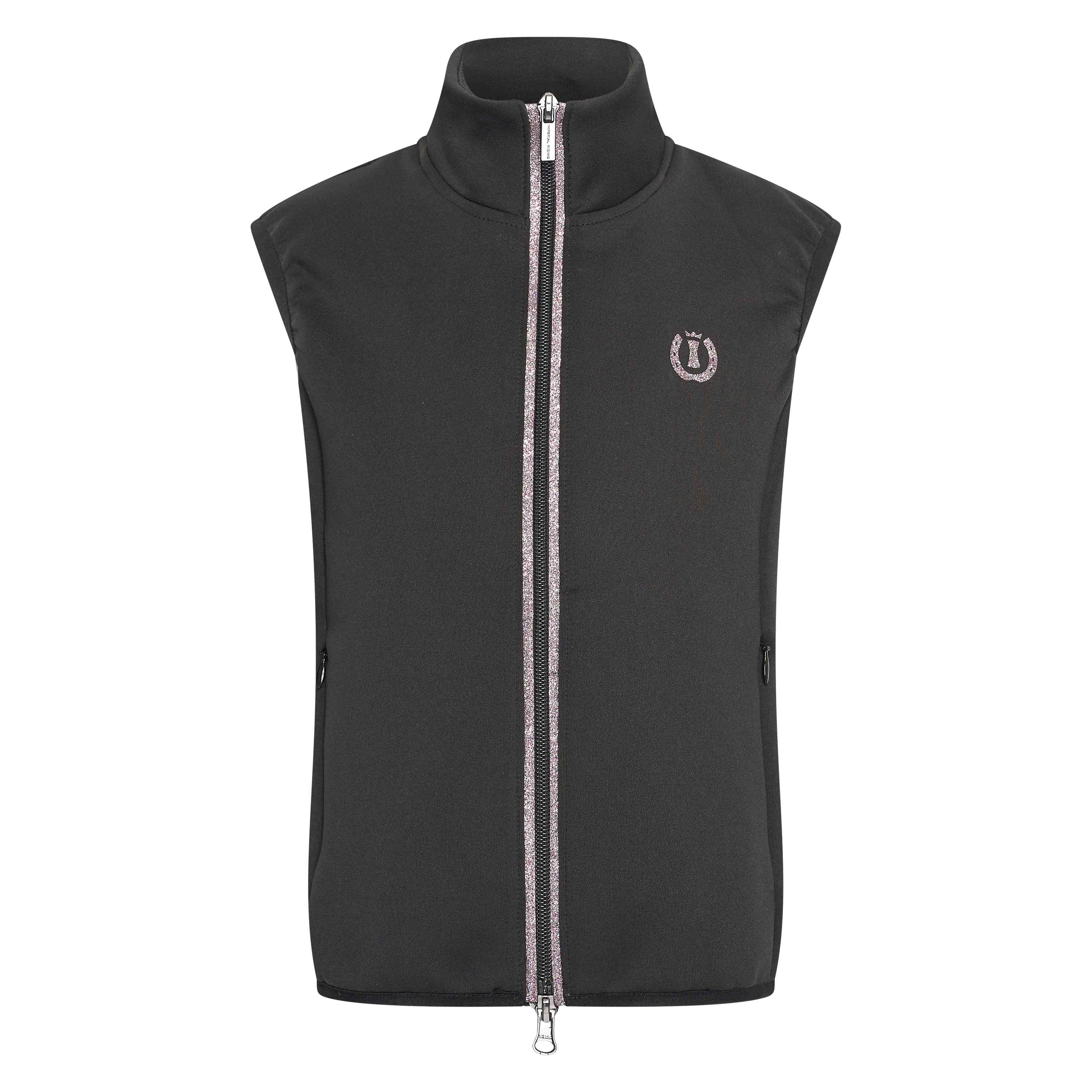 Step into the spotlight at your stable or beyond with the IRH-Izzy Sun Bodywarmer. Specifically crafted for riders who love to sparkle, this glamorous piece blends luxurious style with exceptional functionality. Made from tech knitted fabric, this sleeveless beauty delivers a modern yet elegant silhouette, ensuring effortless freedom of movement whether you're training, competing, or simply socialising at the yard. Convenient front pockets hidden stylishly in the length seam and a practical two-way zipper enhance functionality, while a dazzling glitter artwork on the left chest adds a touch of sophisticated glamour. This is not just a bodywarmer–it's your signature style statement that exudes confidence wherever you go.