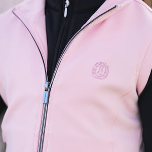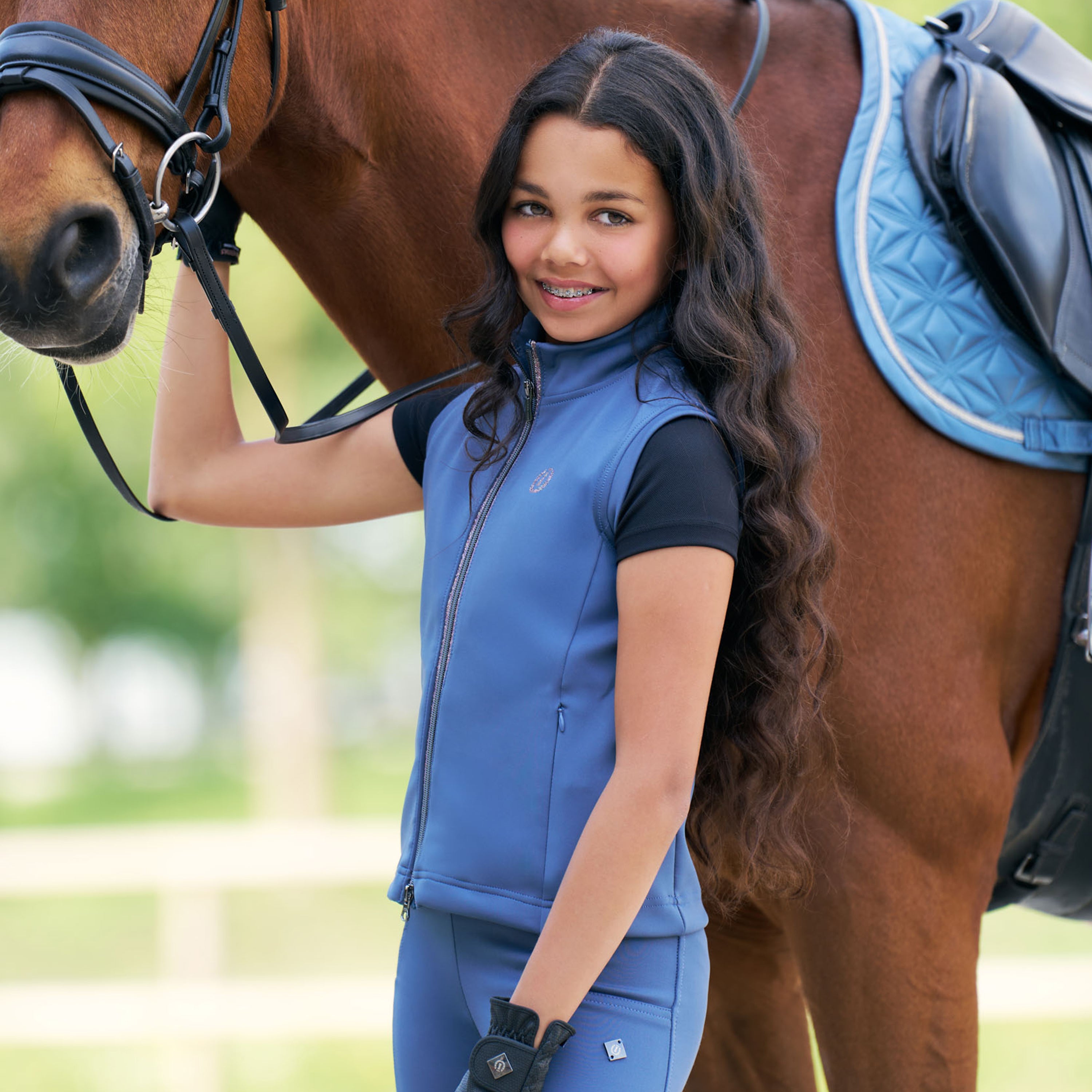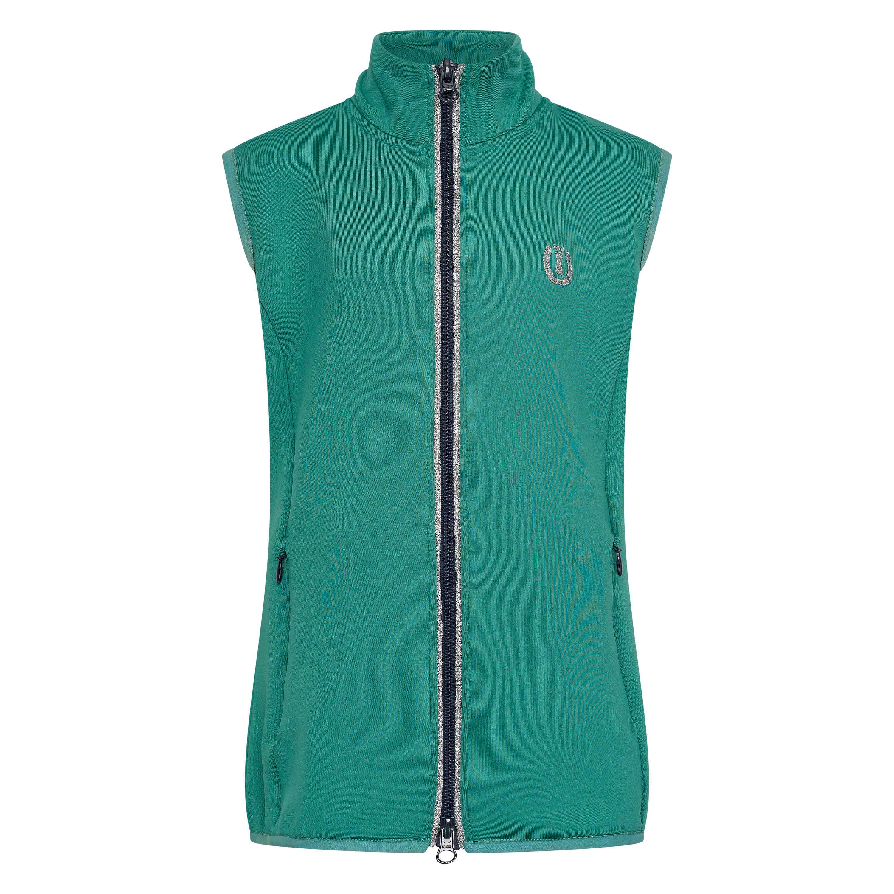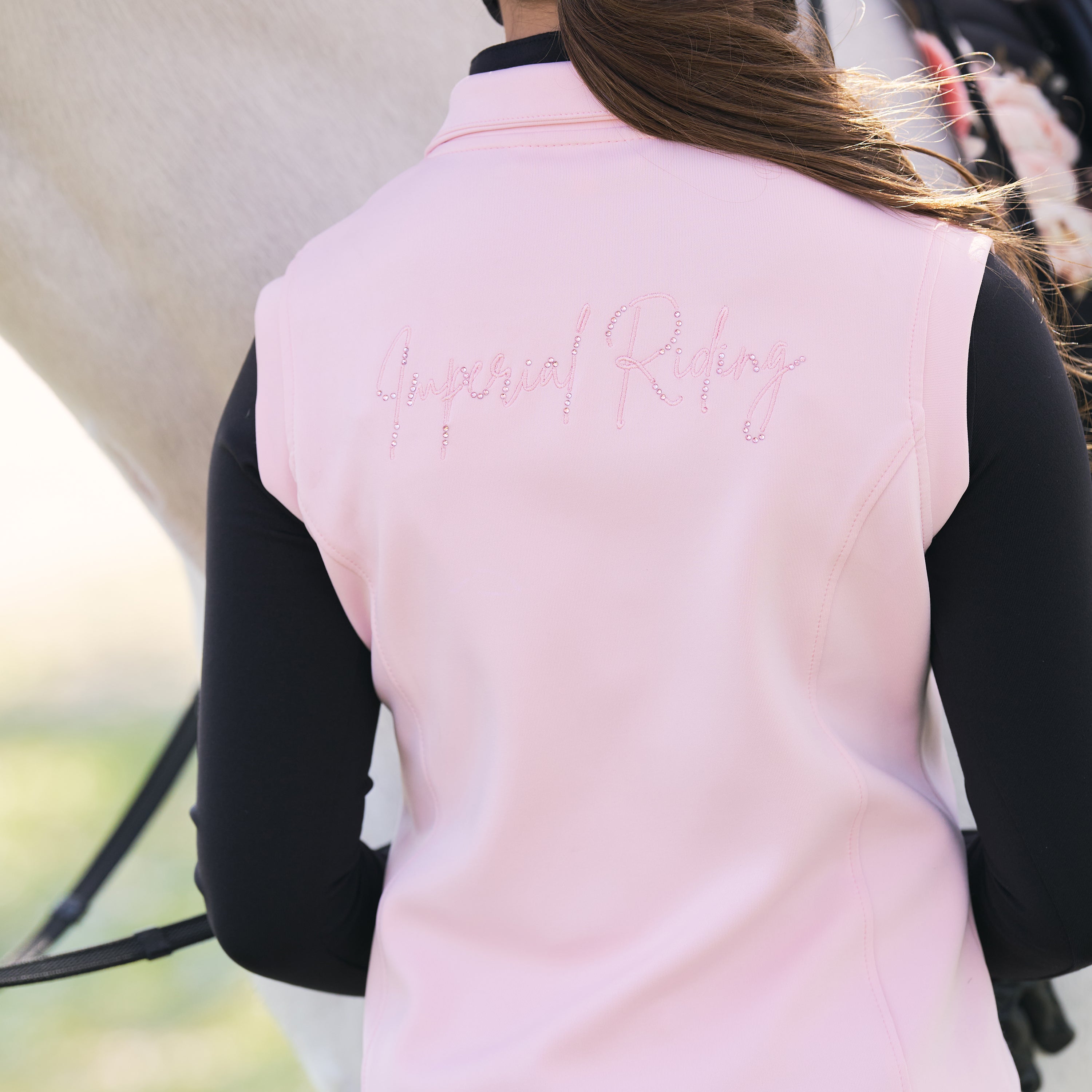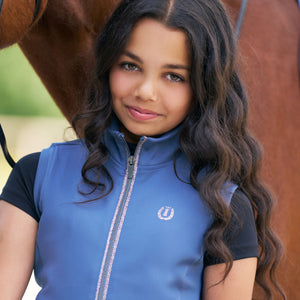 Step into the spotlight at your stable or beyond with the IRH-Izzy Sun Bodywarmer. Specifically crafted for riders who love to sparkle, this glamorous piece blends luxurious style with exceptional functionality. Made from tech knitted fabric, this sleeveless beauty delivers a modern yet elegant silhouette, ensuring effortless freedom of movement whether you're training, competing, or simply socialising at the yard. Convenient front pockets hidden stylishly in the length seam and a practical two-way zipper enhance functionality, while a dazzling glitter artwork on the left chest adds a touch of sophisticated glamour. This is not just a bodywarmer–it's your signature style statement that exudes confidence wherever you go.