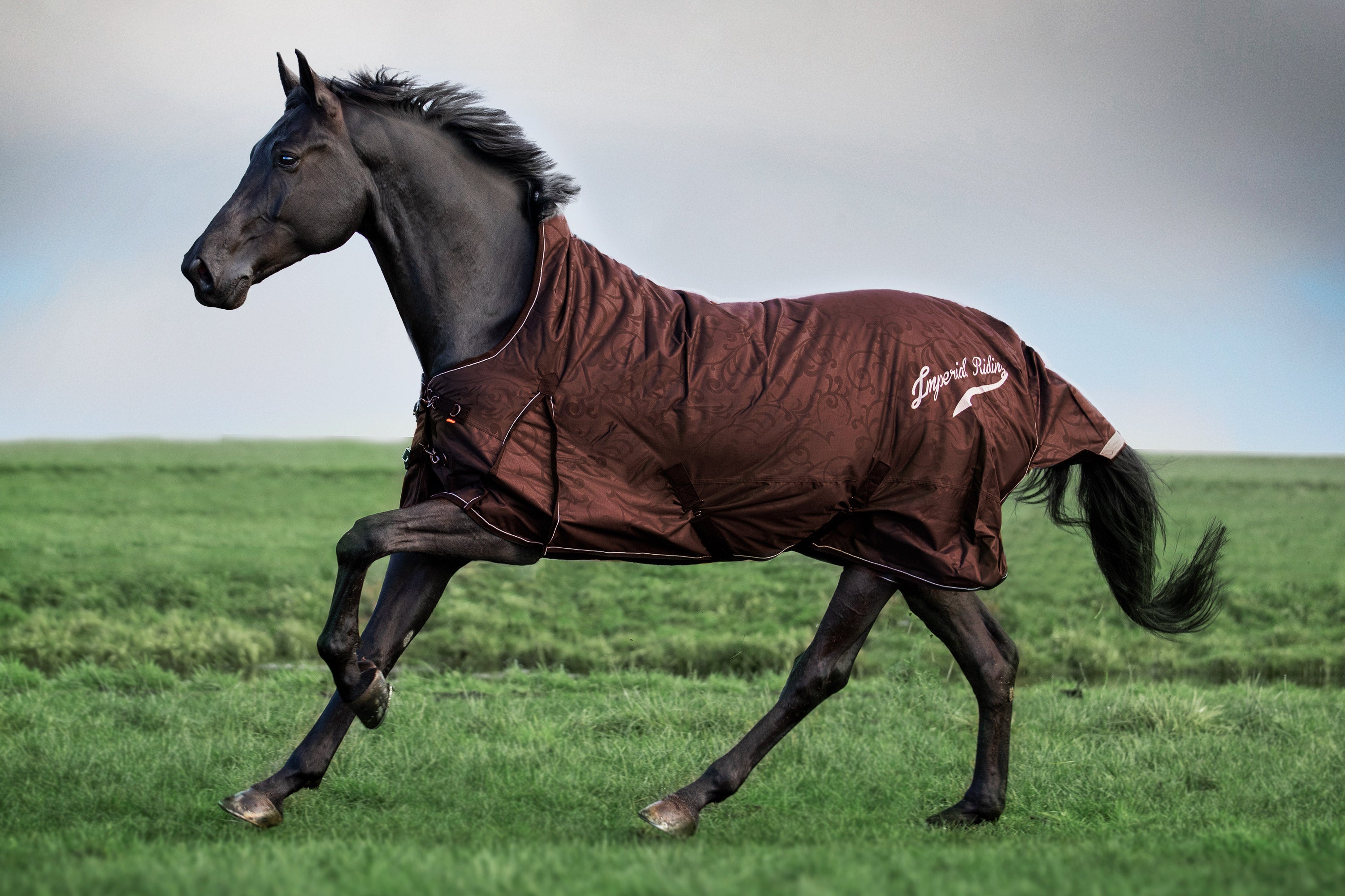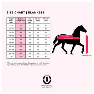 Stay warm and stylish with the Imperial Riding Super Dry outdoor blanket! Designed for ultimate protection from the elements, this blanket features a withers cushion, adjustable double chest fastening, leg straps, reinforced kick pleat, and a protective tail rubber strip. The beautiful shiny material with a low-key pattern comes in a range of attractive colours, complete with a large-scale Imperial Riding logo for added flair. Keep your horse cozy and chic with the Super Dry outdoor blanket - the perfect all-round item for any outdoor adventure!